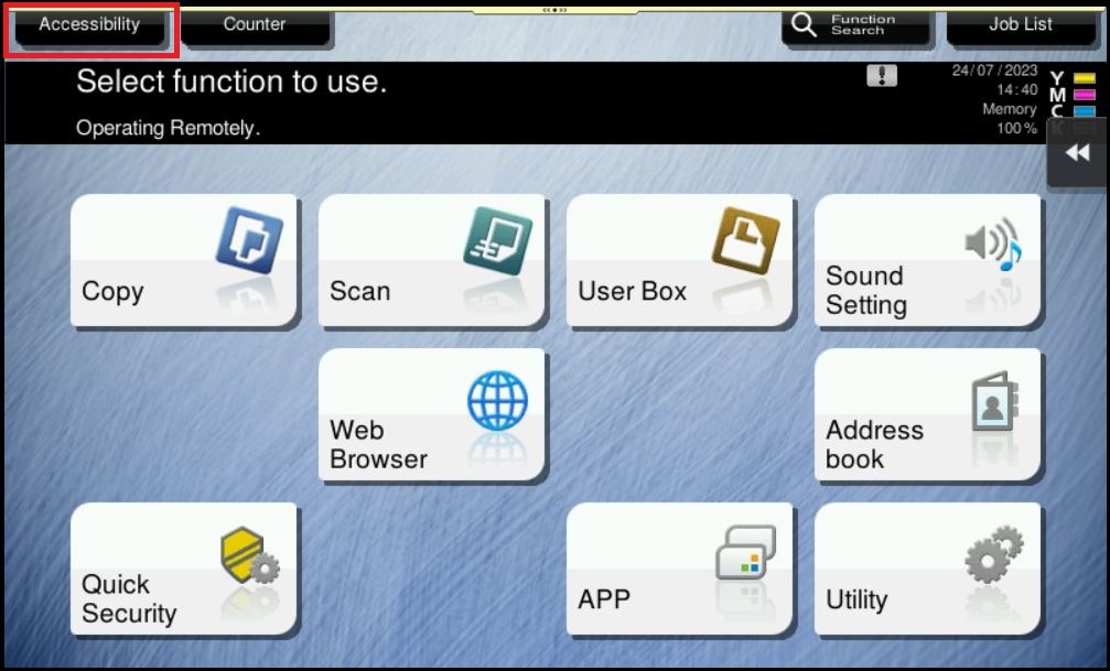 STEP 1 – On the Main Menu, select [Accessibility].
