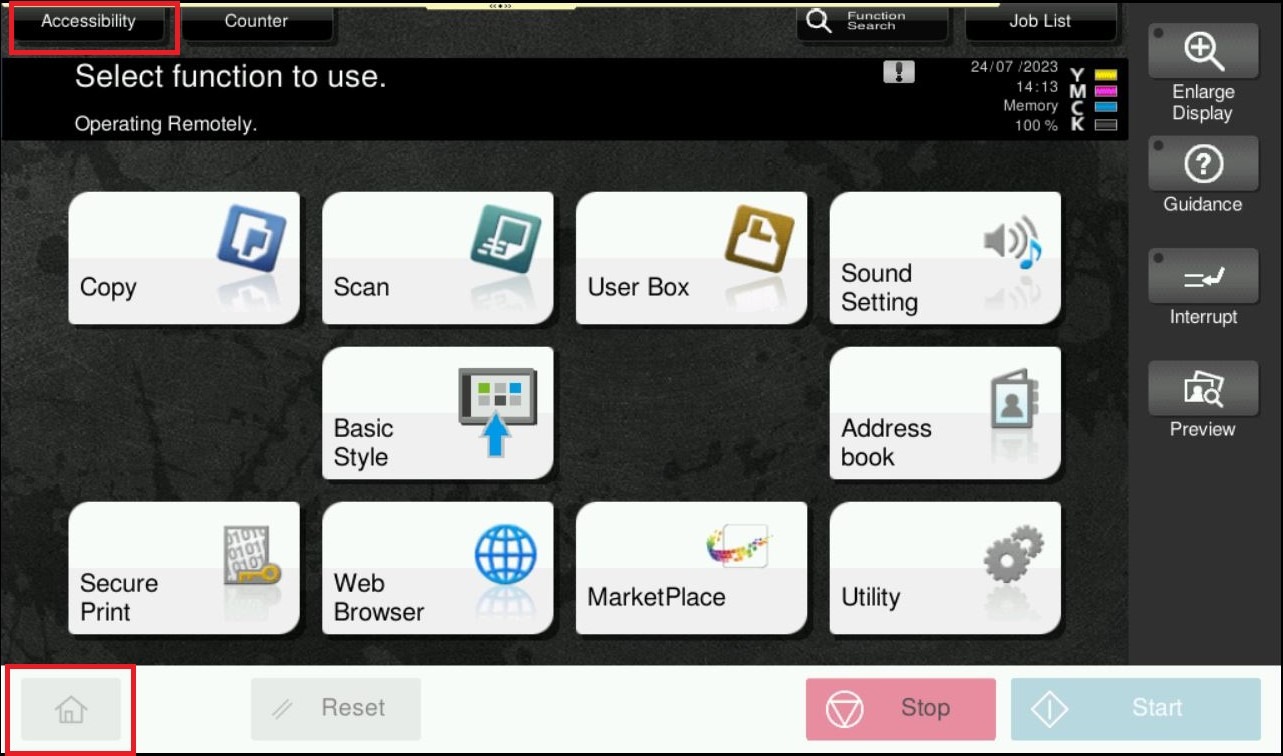 **For newer version like I-Series Machine, you need to click on [Home] icon, then select [Accessibility] **