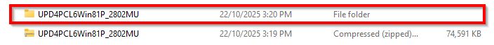When attempting to install the Universal Printer Driver (UPD) on a new PC for printing, the installation cannot proceed to the next step after selecting the printer driver. This issue occurs because the Windows processor version is different and the Universal Printer Driver V4 must be used instead of the standard Universal Printer Driver PCL.