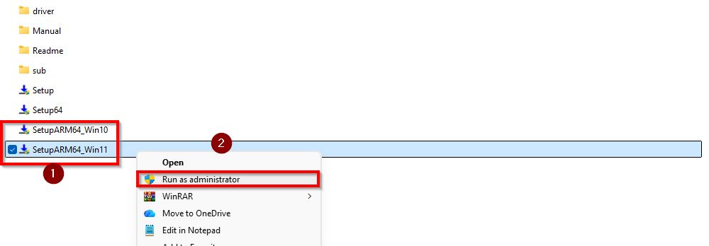 STEP 2 – Once the file has been downloaded, kindly [Extract] the file and run the installer either [SetupARM64_Win10] for Win 10 or [SetupARM64_Win11] for Win 11.