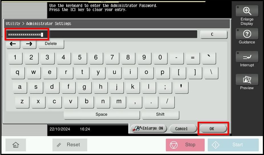 STEP 3 – Key in the default administrator password and click [OK] button.