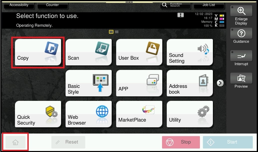 STEP 1 – On the Main Menu Screen, select [Home] – [Copy].