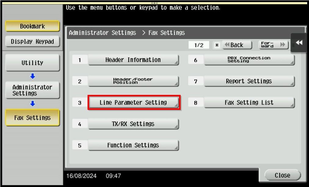 STEP 5 – Select [Line Parameter Setting].