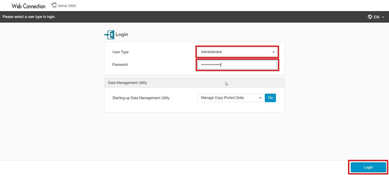 **You may access to web connection via machine IP Address. Click on this to check how to get the IP Address from machine, then key in Konica Minolta Machine IP Address at web browser and log in as admin the Web Connection.