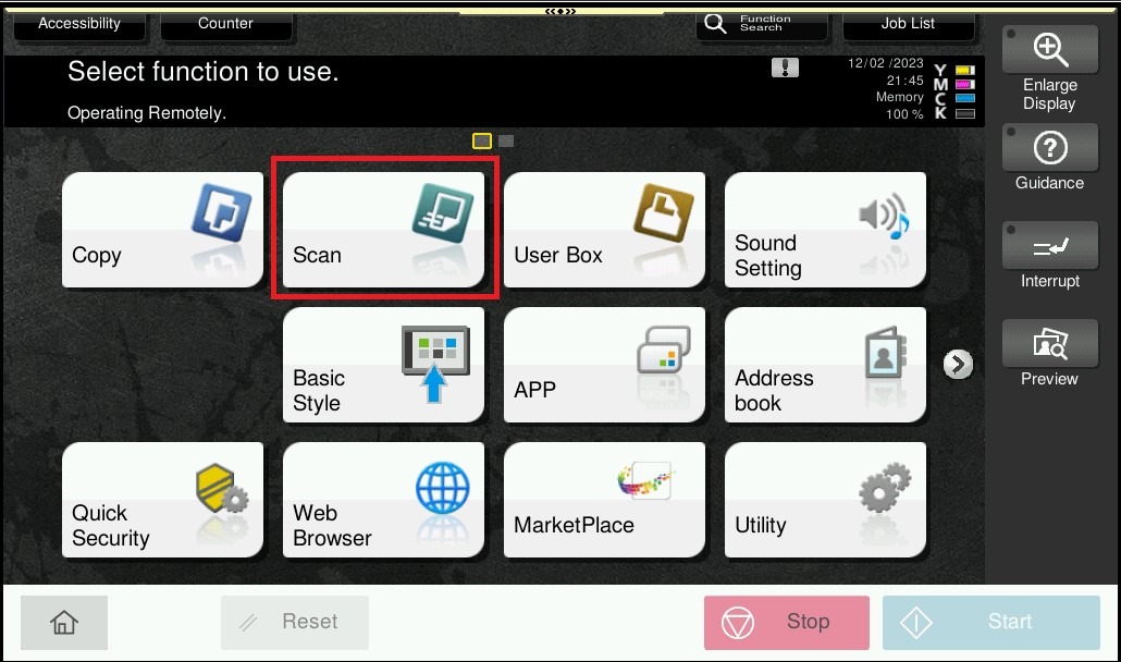 STEP 1 – On the Main Menu Screen, select [Home] – [Scan].