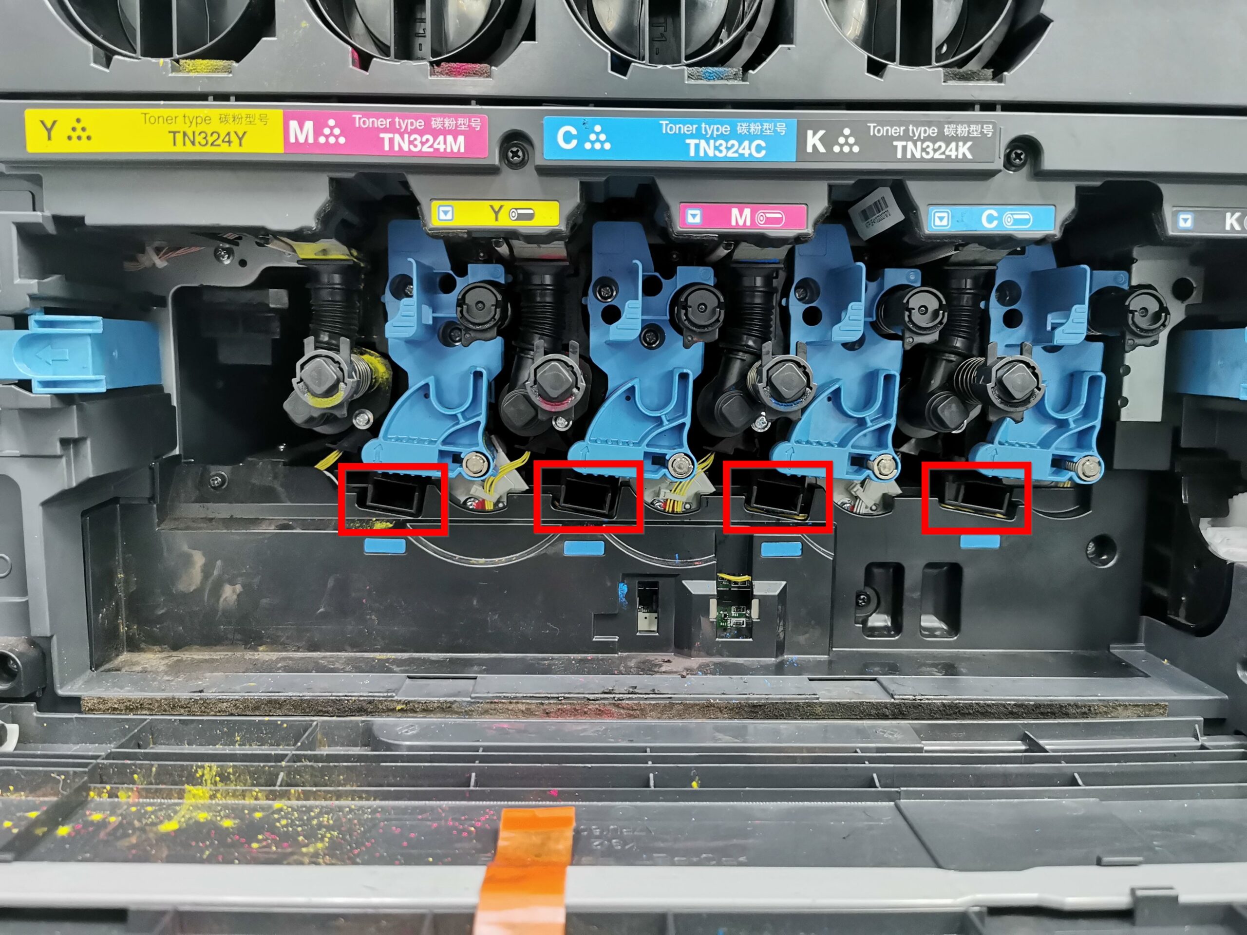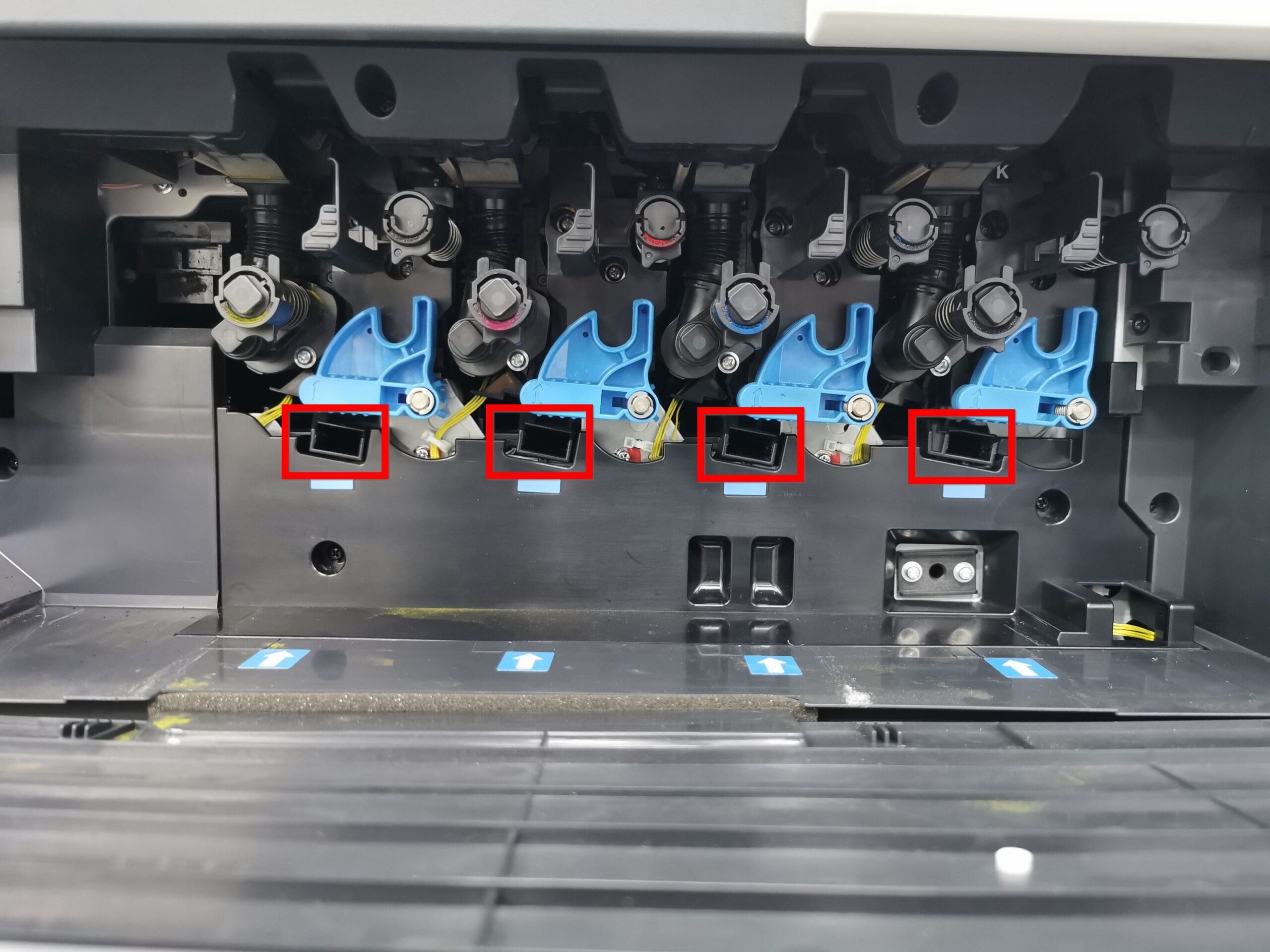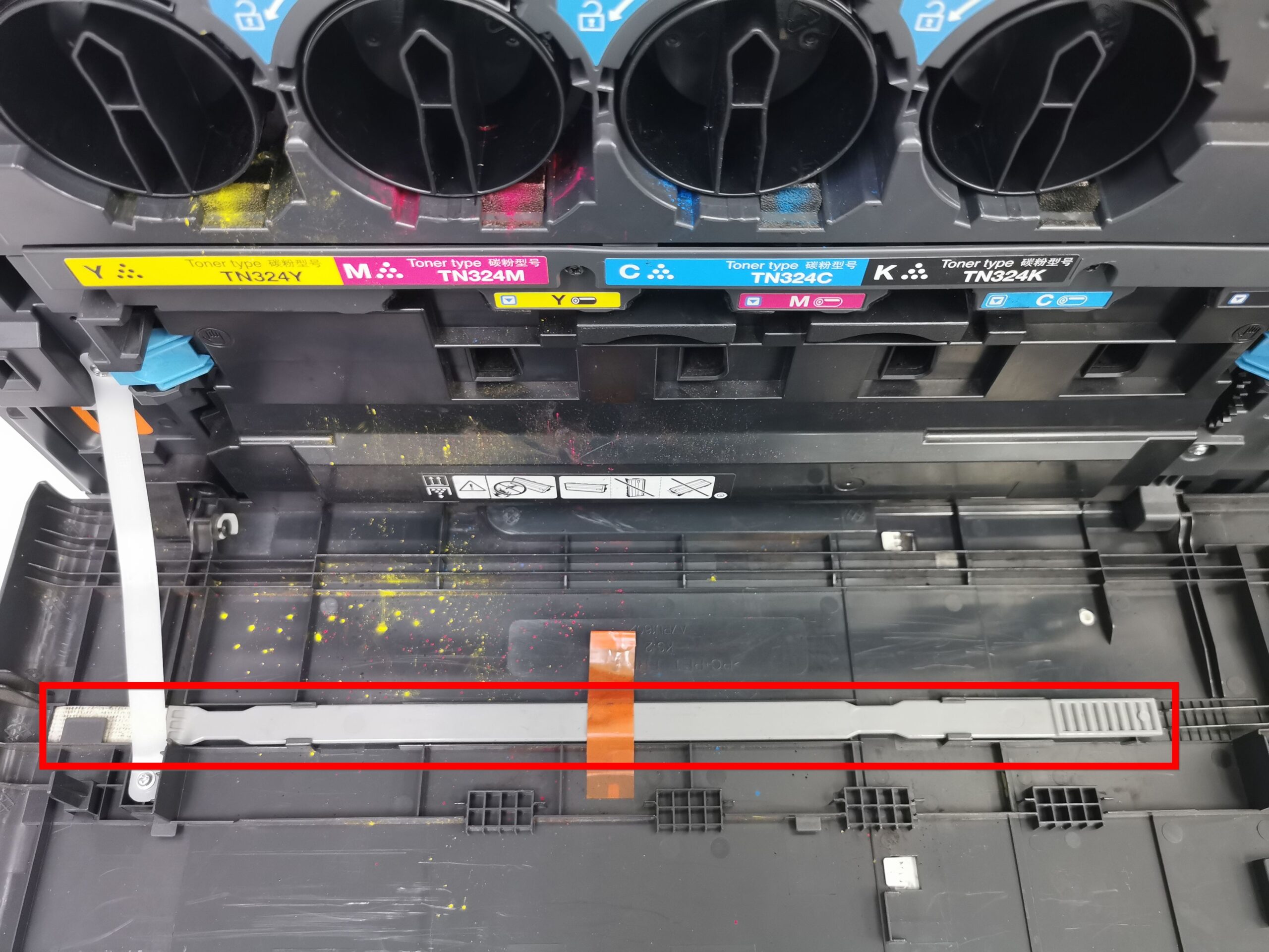 STEP 5 – After cleaning, place the [Printhead Cleaner] back into its holder on the front door. Insert the [Waste Toner Box] back into the machine and ensure it is securely locked. Close the machine front door to complete the process.