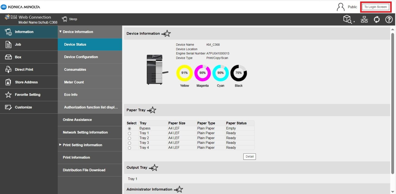 STEP 2 – Select [To login screen] to logout from public user, skip this step if the webpage are already in login page.