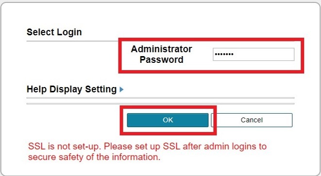 STEP 4 – Enter the administrator password and click [OK].