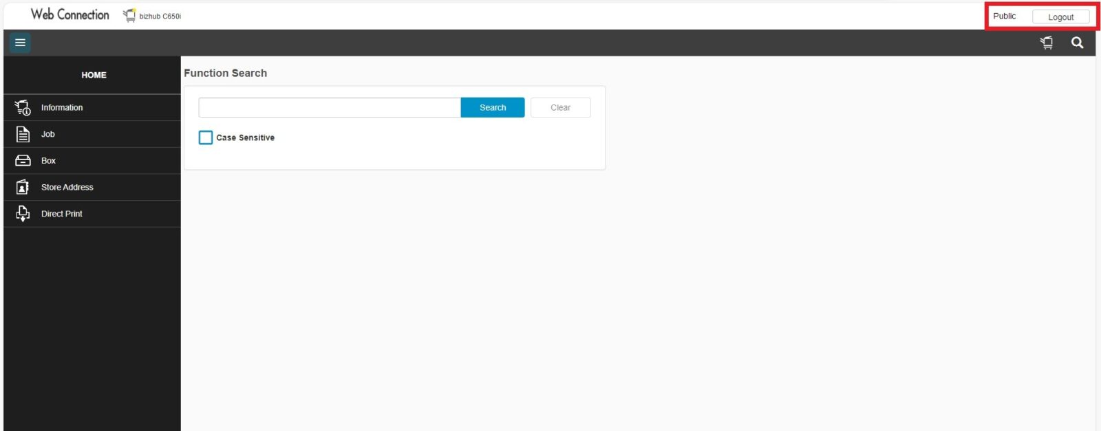 STEP 2 – Select [Logout] to logout from public user, skip this step if the webpage are already in login page.