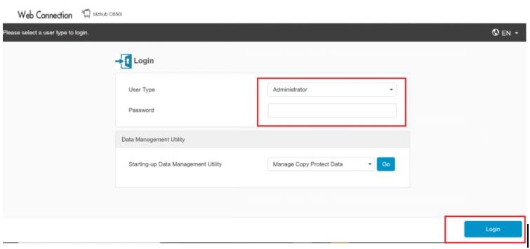 STEP 1 – At the web browser, enter the IP address of the Konica Minolta device. Click Here for the guide on how to get the machine IP Address.