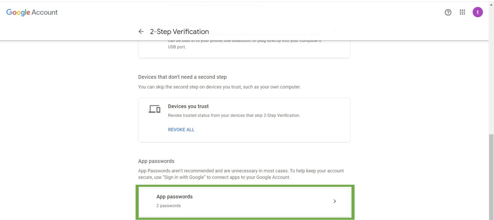 STEP 2 – Scroll down and select App Passwords.