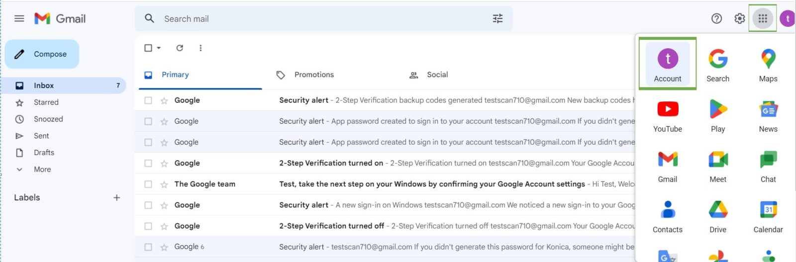 STEP 1 – Once create a new Gmail Account, Select 9 dot on above right hand side and select Account