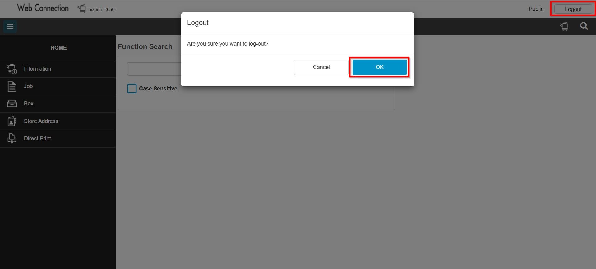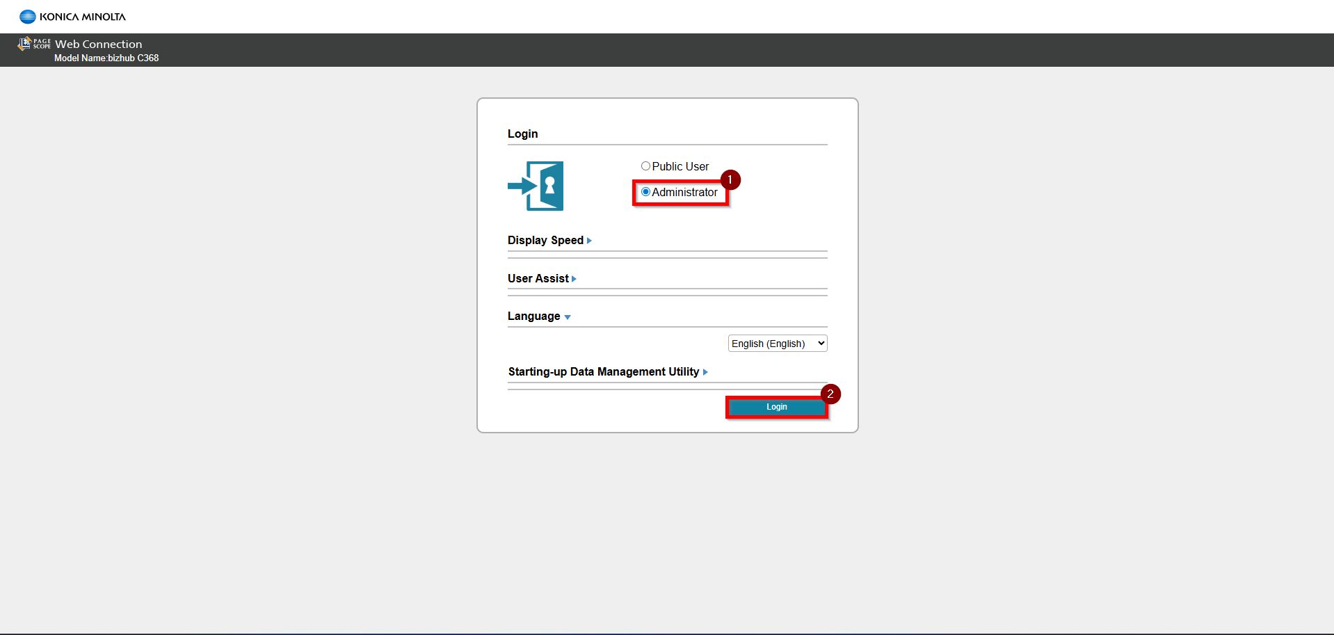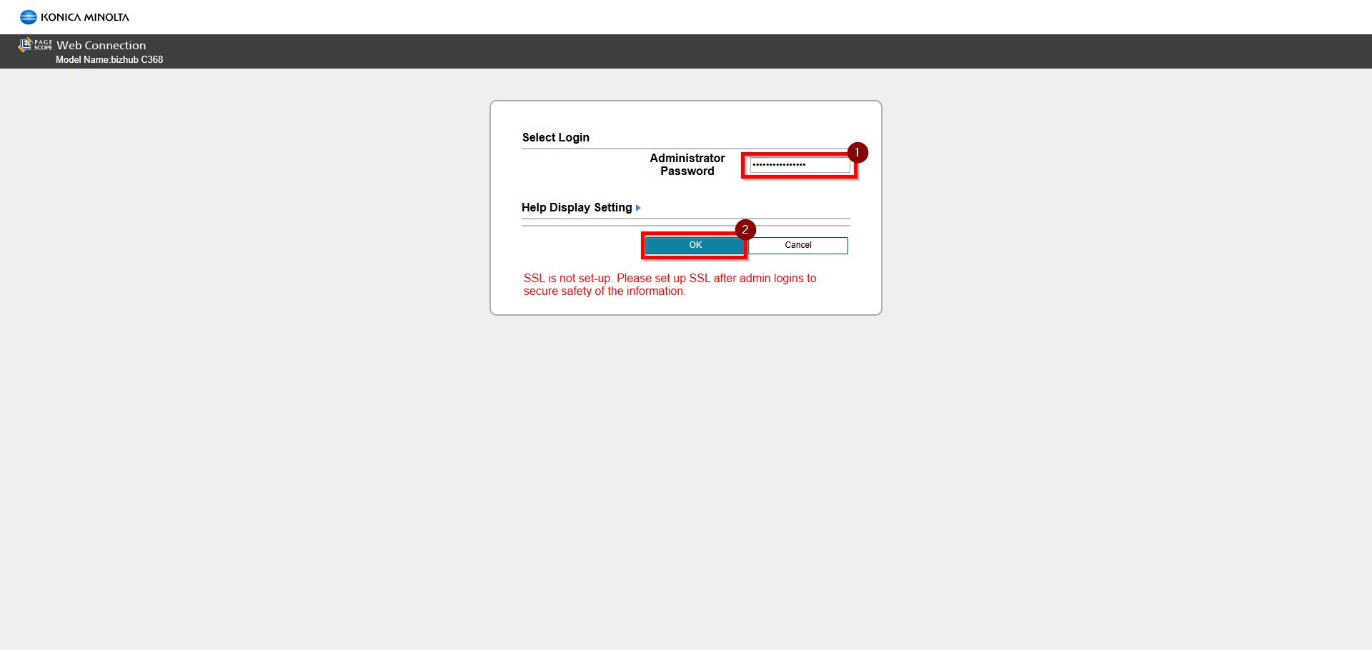 **You may access to web connection via machine IP Address. Click on this to check how to get the IP Address from machine, then key in Konica Minolta Machine IP Address at web browser and log in as admin the Web Connection.
