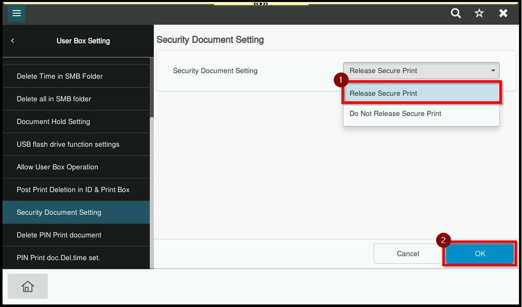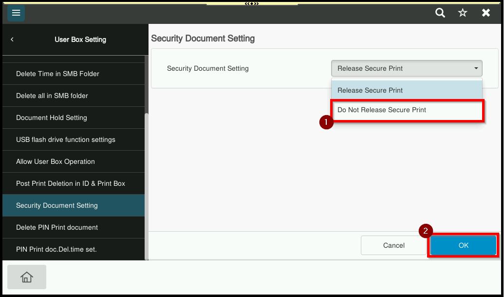 STEP 5 – Choose [User Box Settings] – [Security Document Setting].