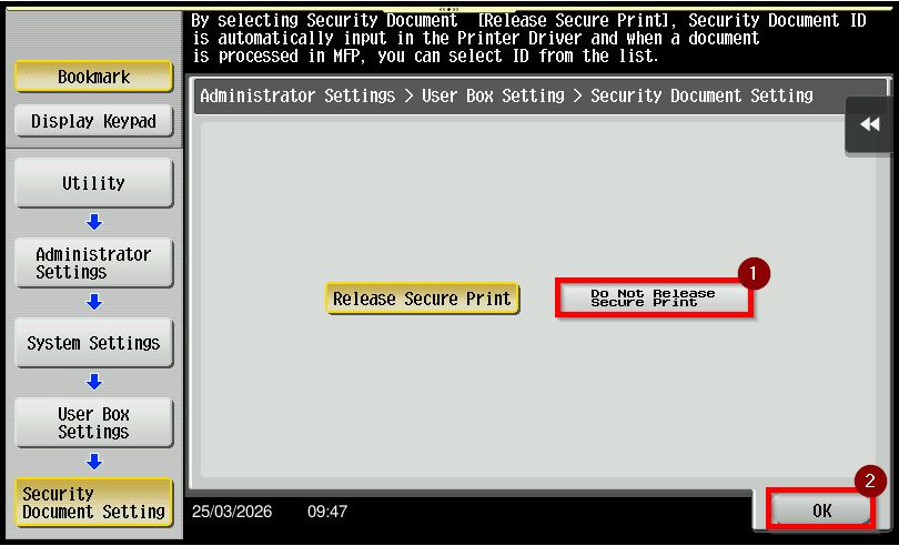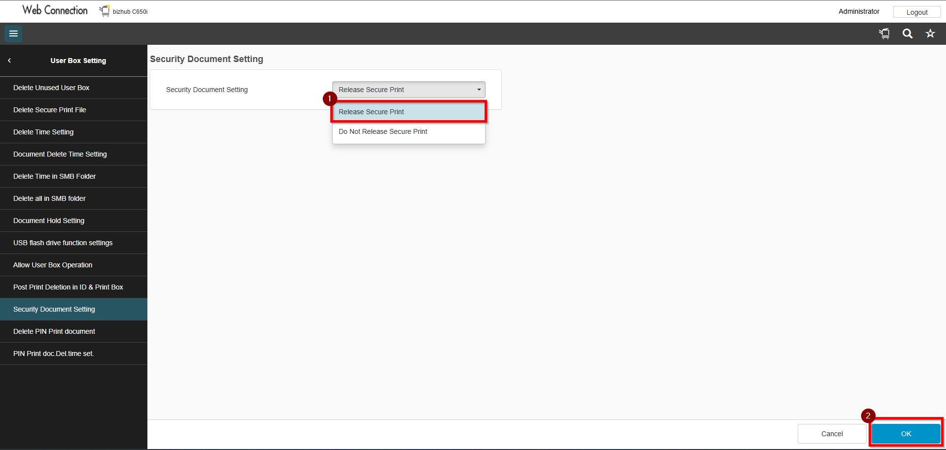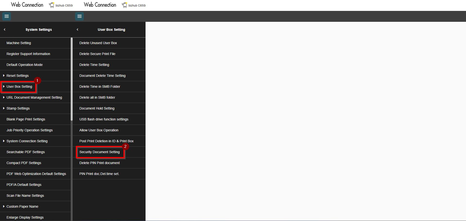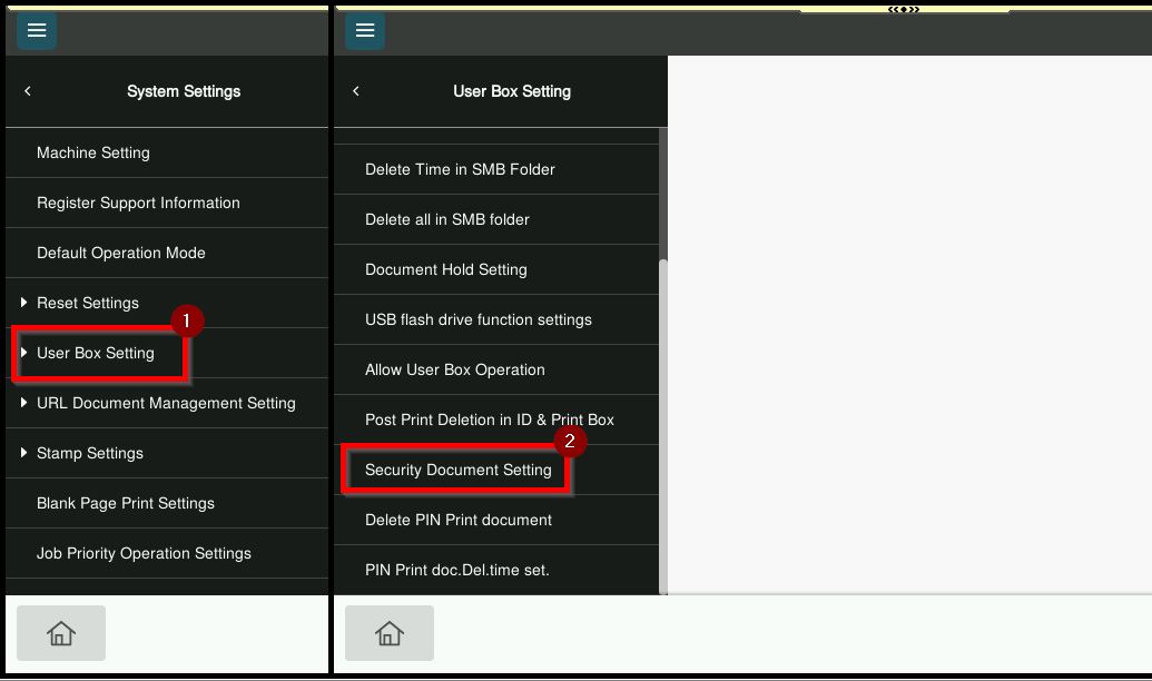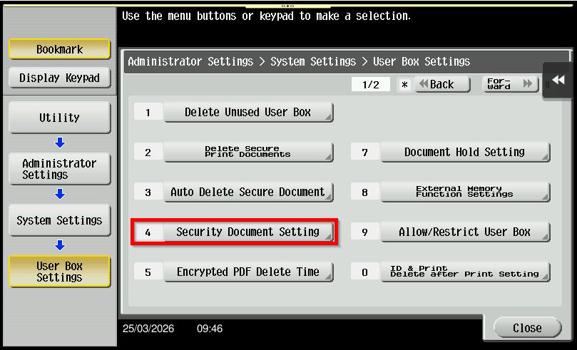 Step 4 – Choose [User Box Setting] – [Security Document Setting].