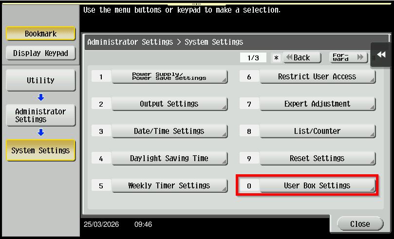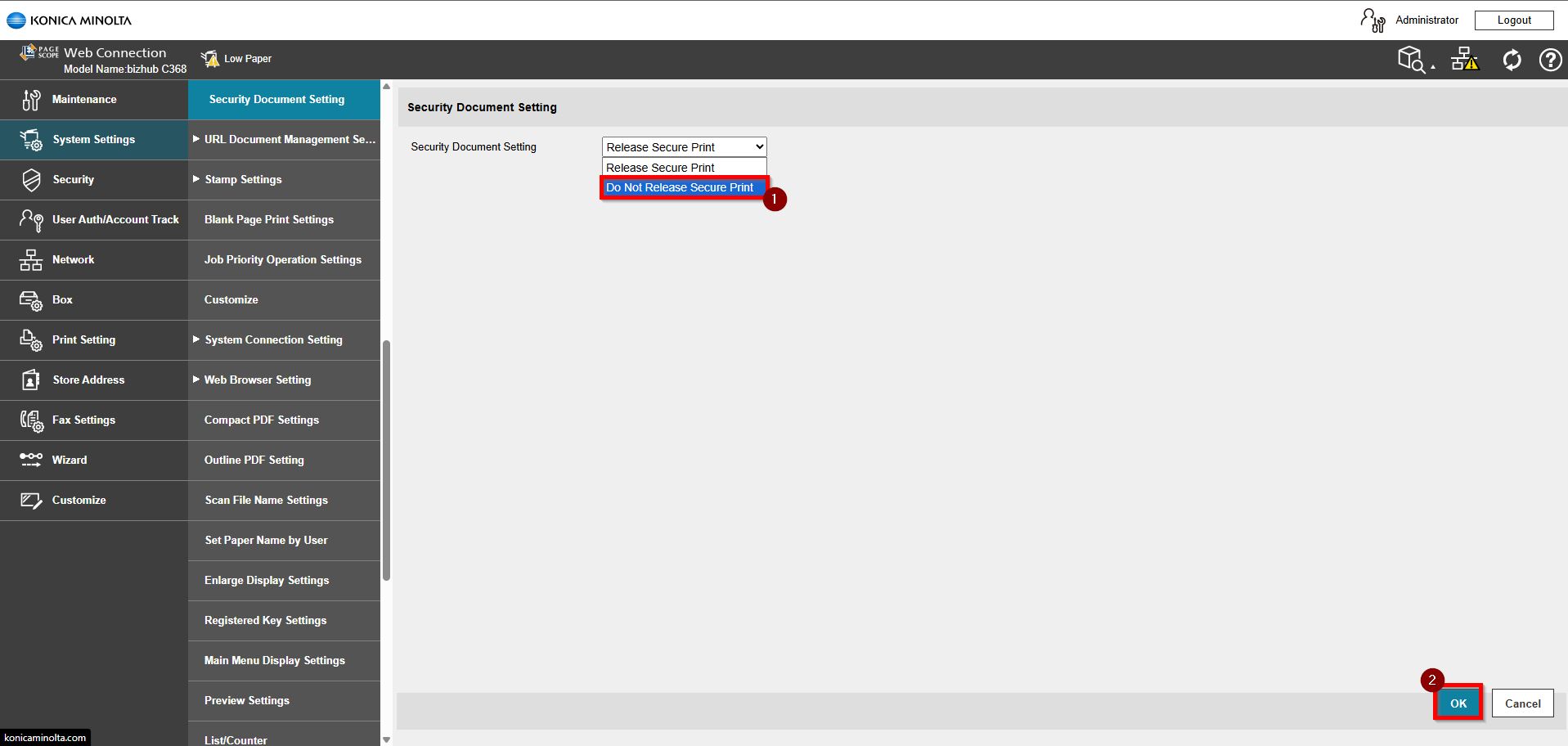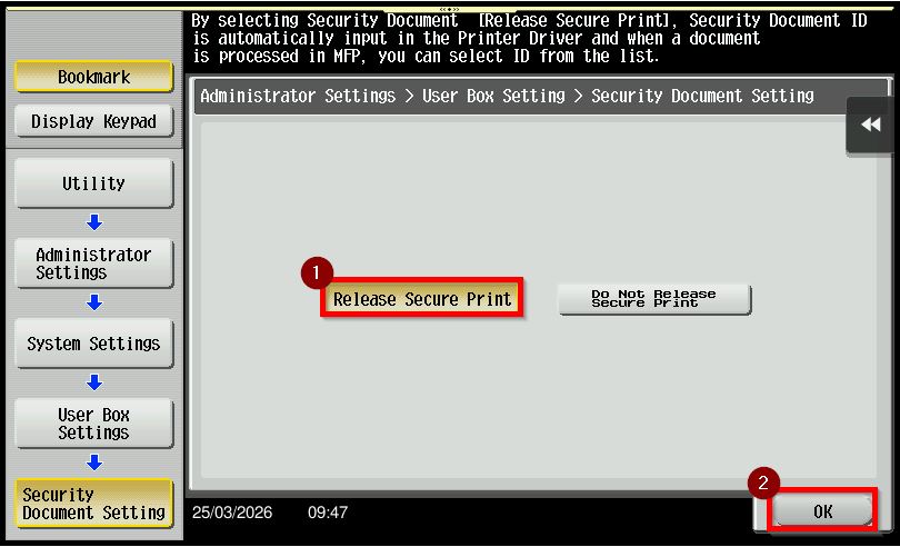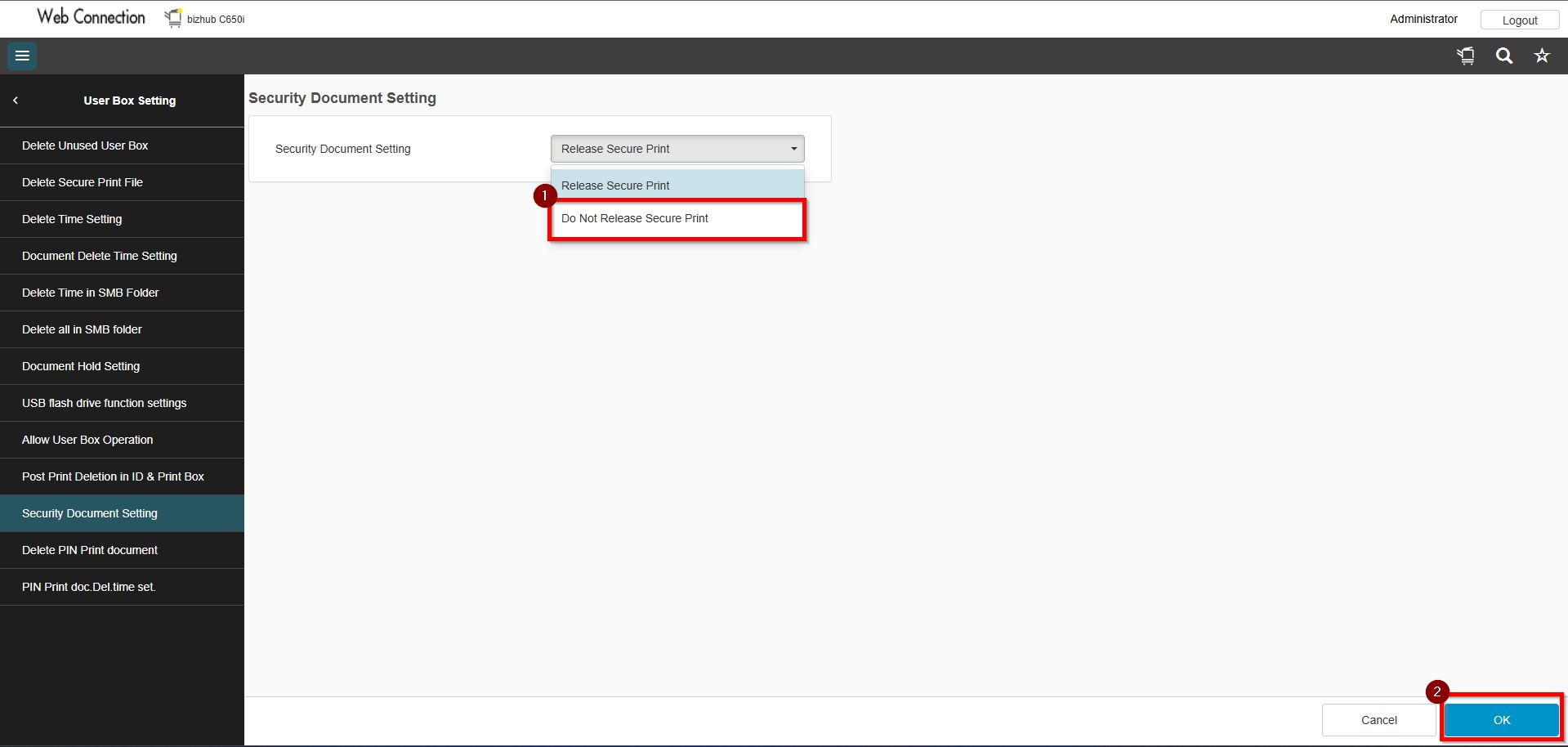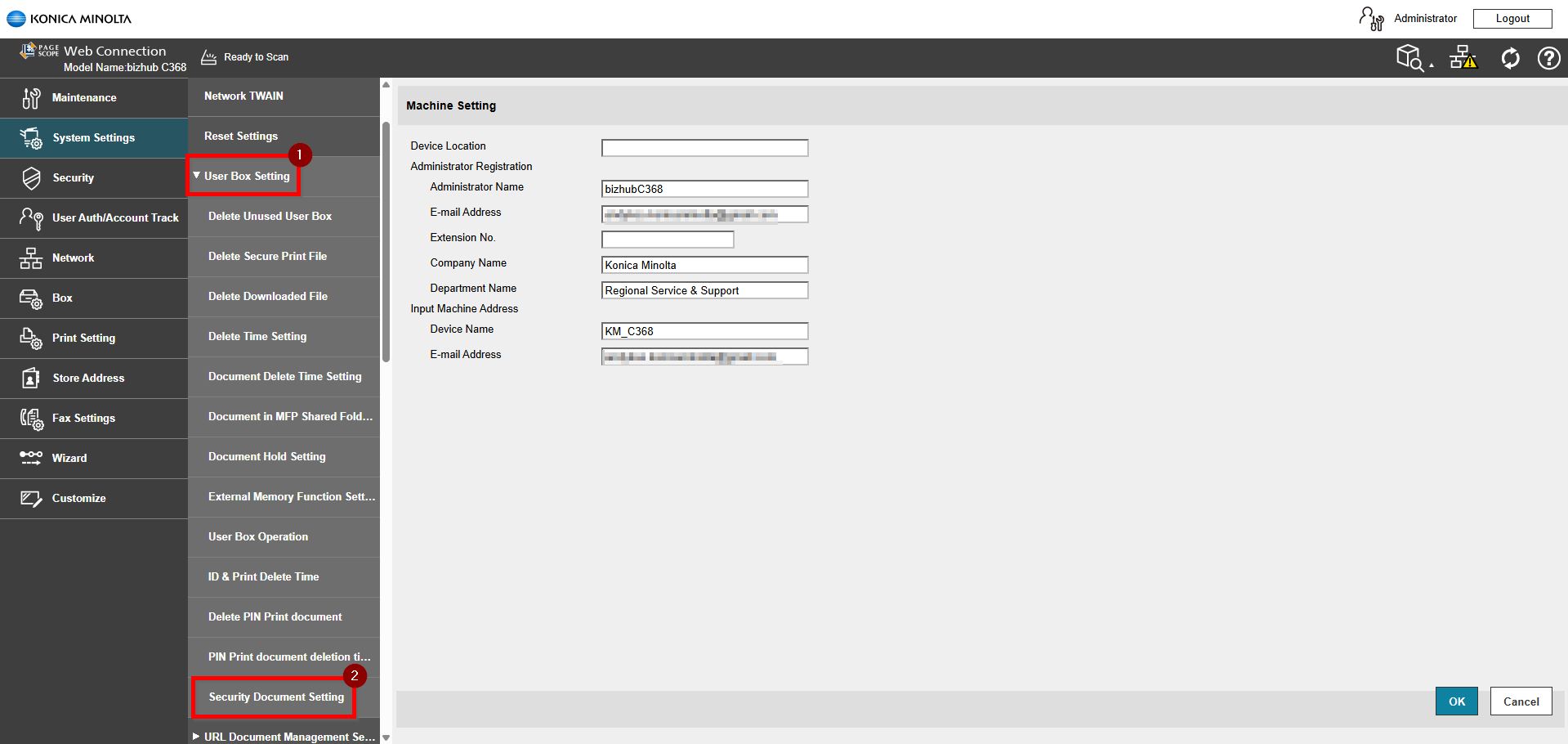 Step 4 – Choose [User Box Setting] – [Security Document Setting].