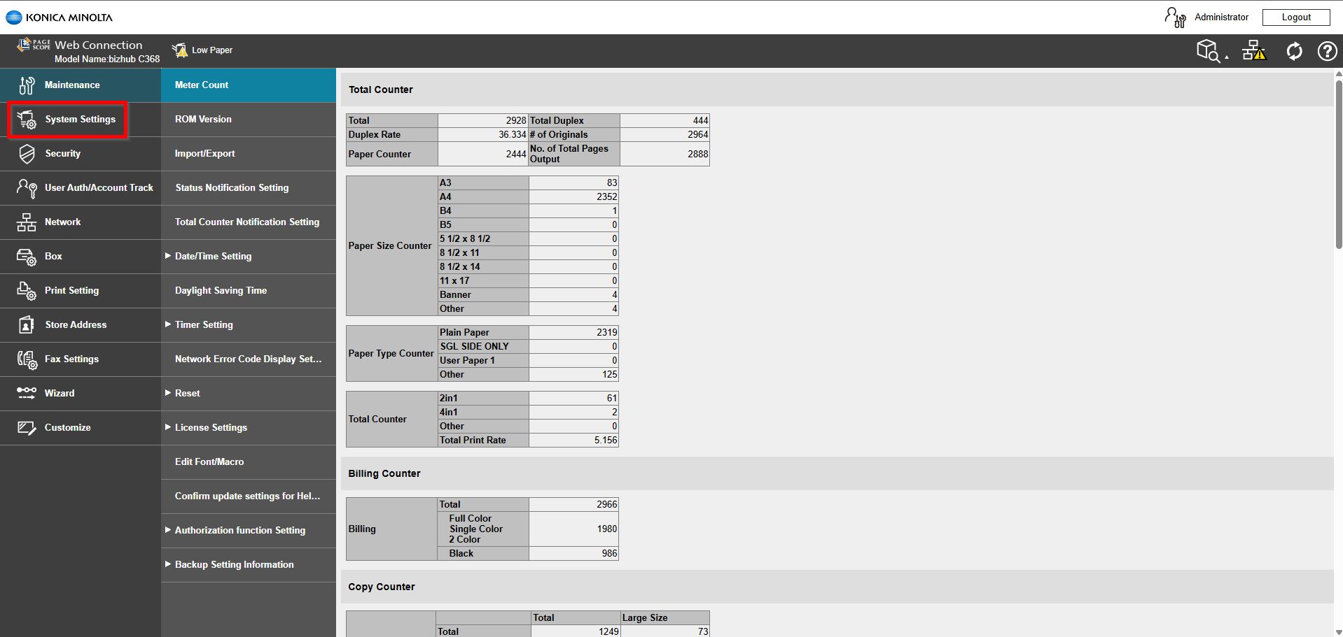 For Older Machine series / Non I-Series Machine (Accessible via Web Connection)