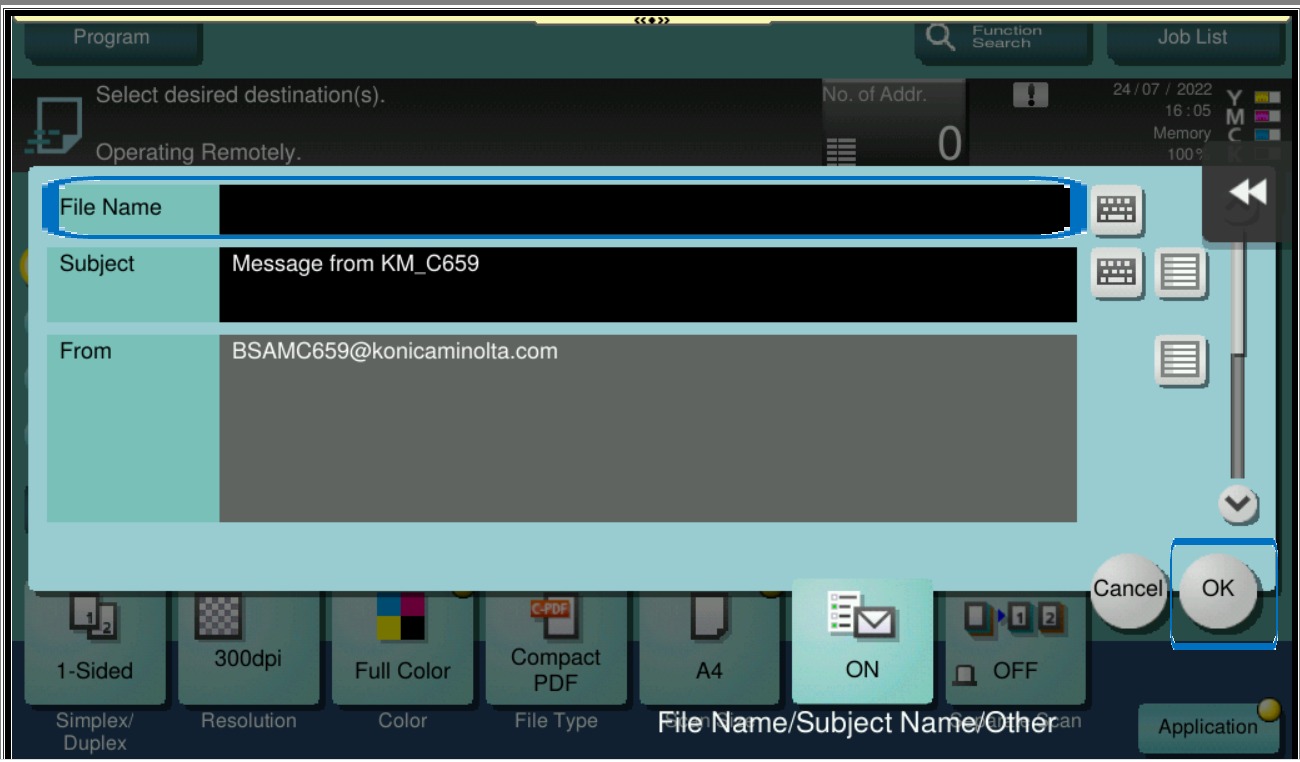 STEP 3 – Change the scan file name accordingly, then select [OK] and start scan.