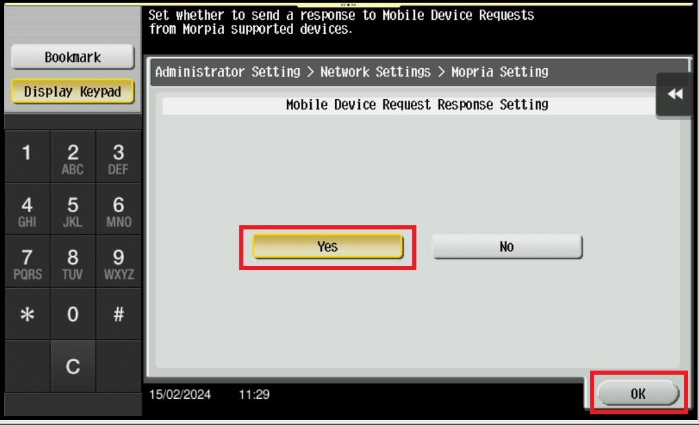 STEP 5 – Enable the Mopria function by select [Yes] then click [OK] to save the setting.