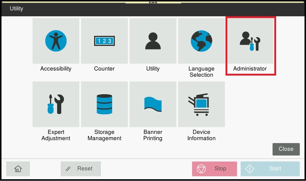 STEP 1 – On the Konica Minolta machine, click on [Home] icon, Select [Utility] from Control Panel.