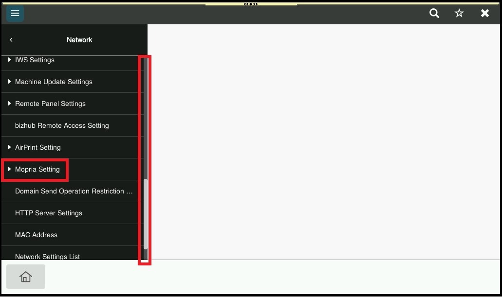 STEP 3 – Click on [Network], scroll down and select [Mopria Setting].