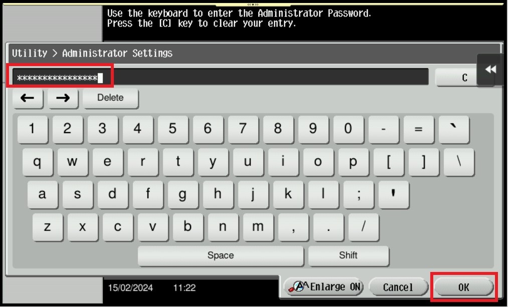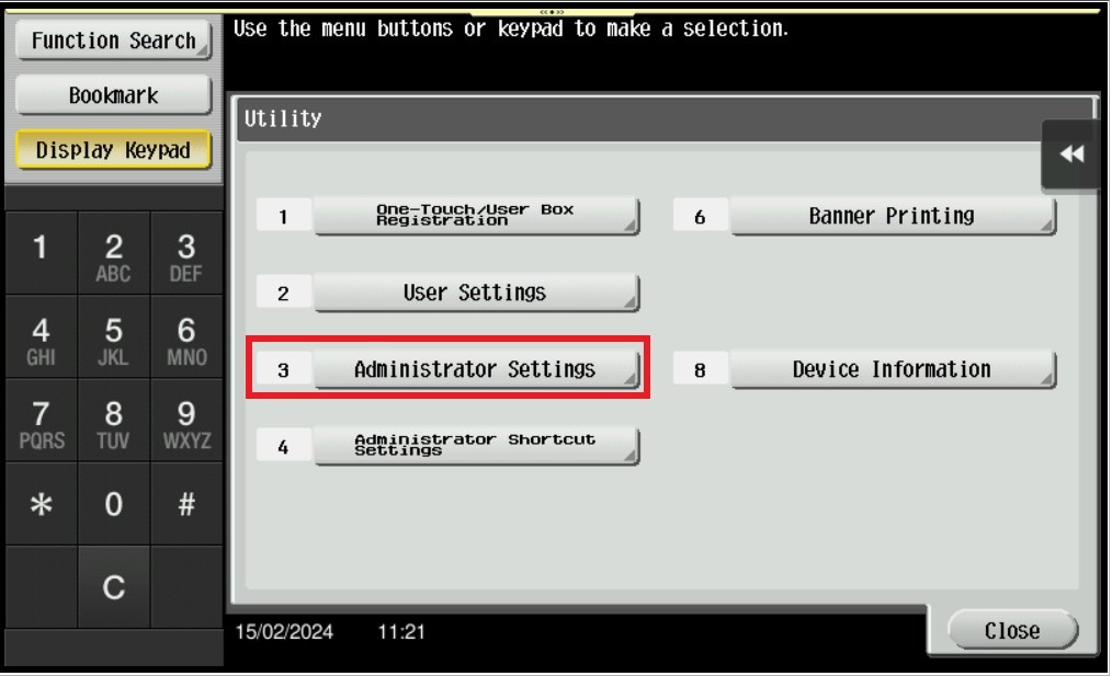 STEP 2 – Select [Administrator Settings], and key in the Administrator password accordingly.