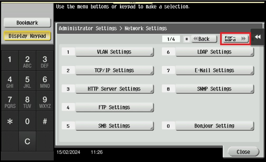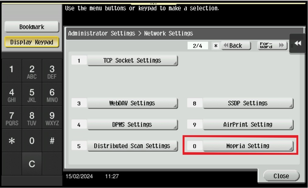 STEP 4 – Click on [Forward] button to go to page 2/4 then select [Mopria Setting].