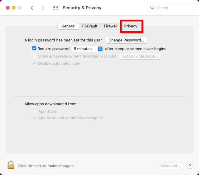 Step 2 – Click on the [Security & Privacy] – [Privacy].