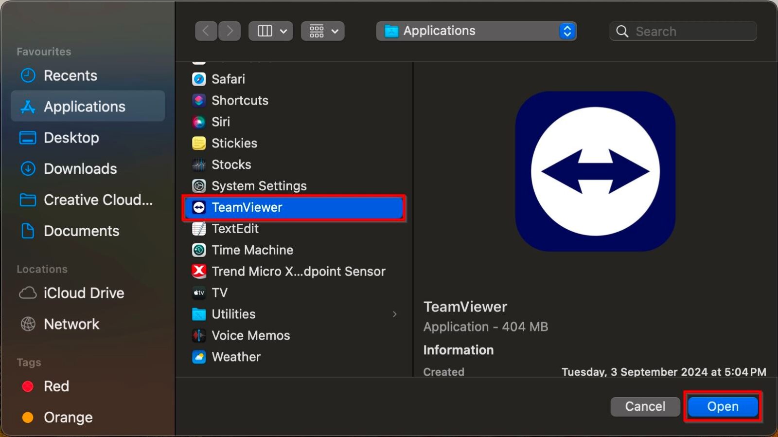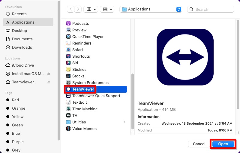 STEP 5 – Scroll down and click on the [TeamViewer] and click [Open].