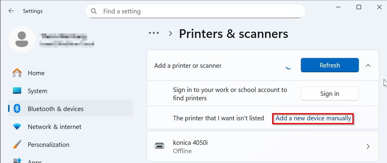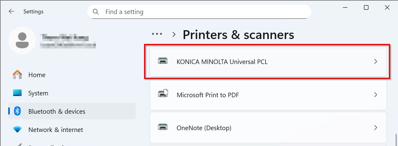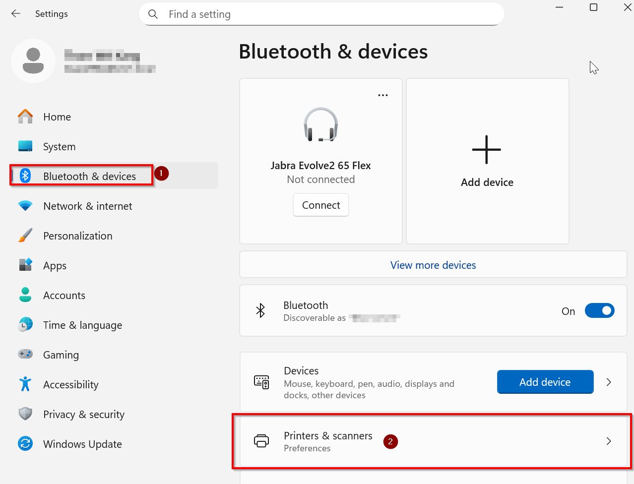 STEP 2 – Select [Bluetooth & devices] – [Printers & scanners].