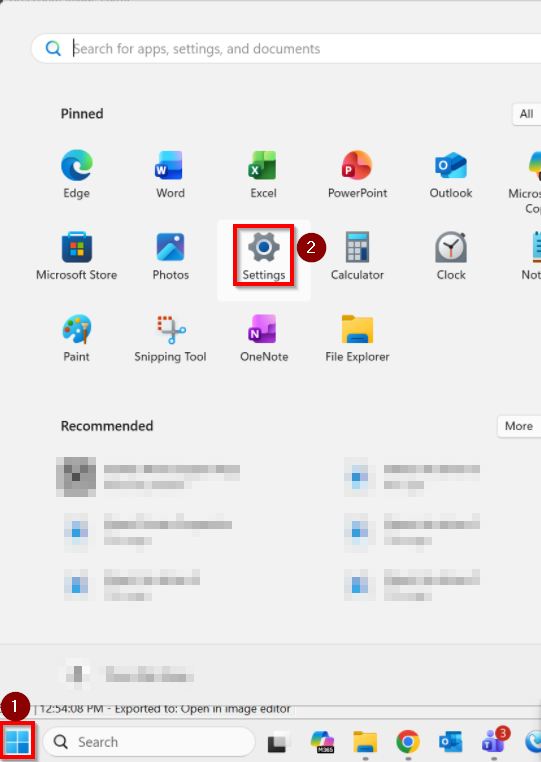 STEP 1 – Click on the [Start] – [Settings] button on the taskbar as shown below.