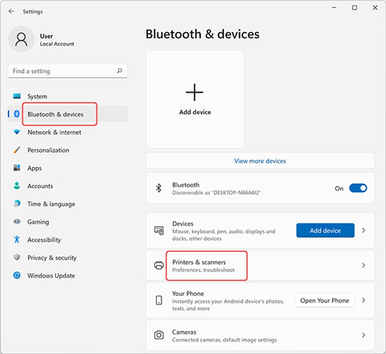 STEP 3 – Select Bluetooth & devices and choose Printers & scanners.