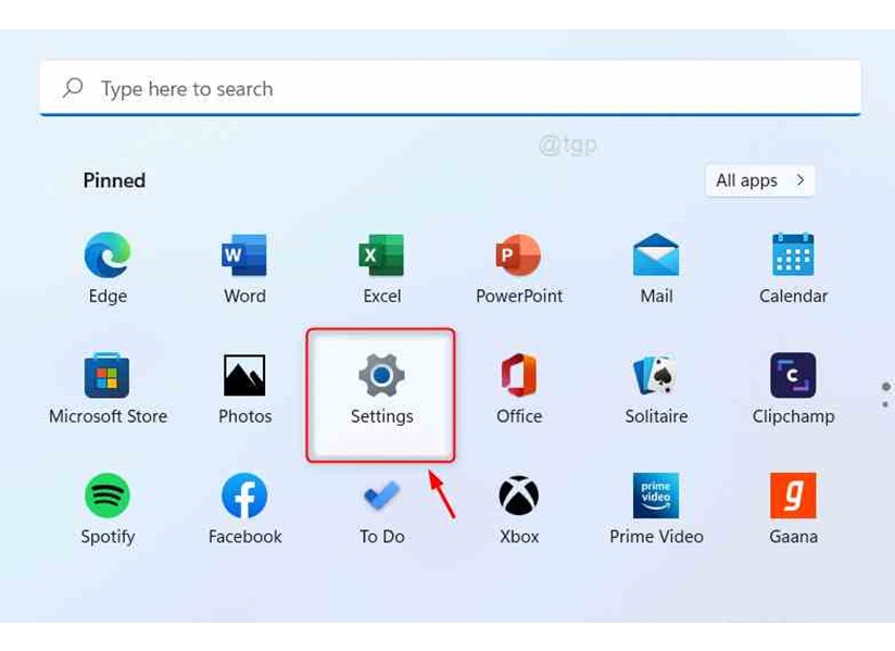 STEP 2 – Click on the [Settings] button under Pinned apps as shown below.