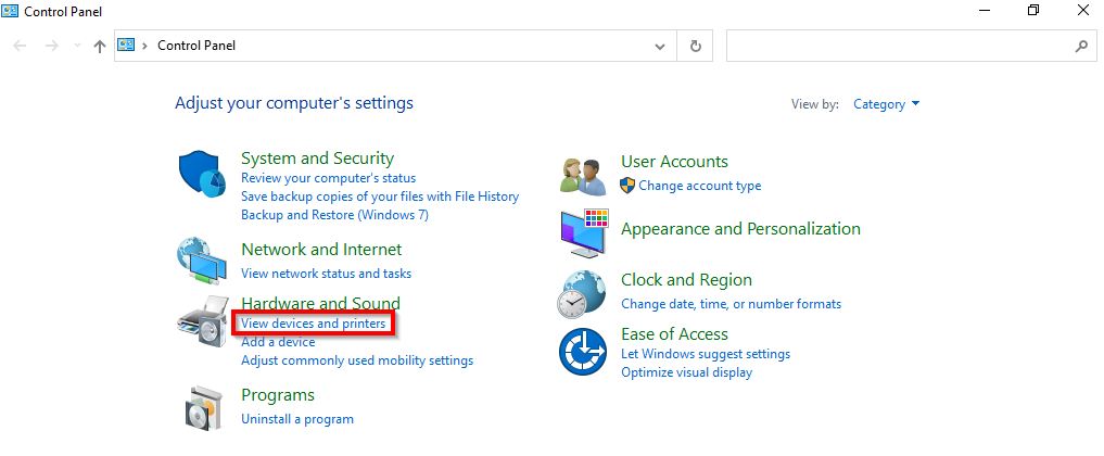 STEP 1 – Go to computer [Control Panel] and select [Devices and Printers].