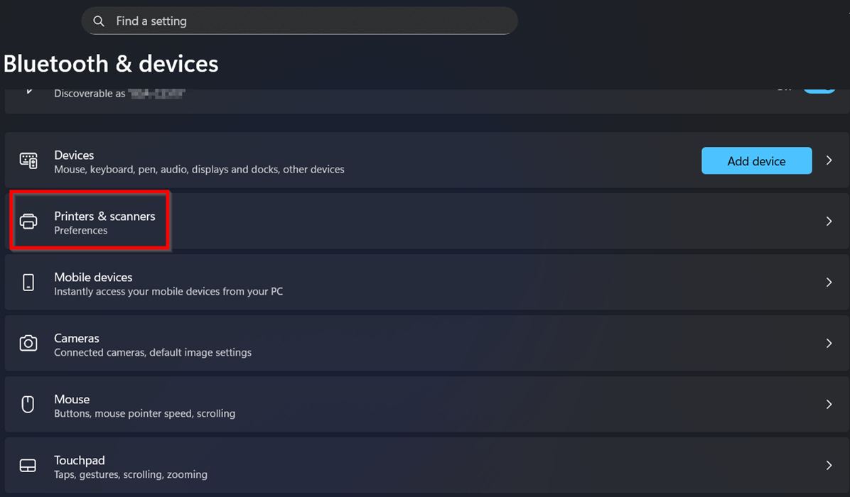 STEP 3 – Select [Bluetooth & devices] and choose [Printers & scanners].