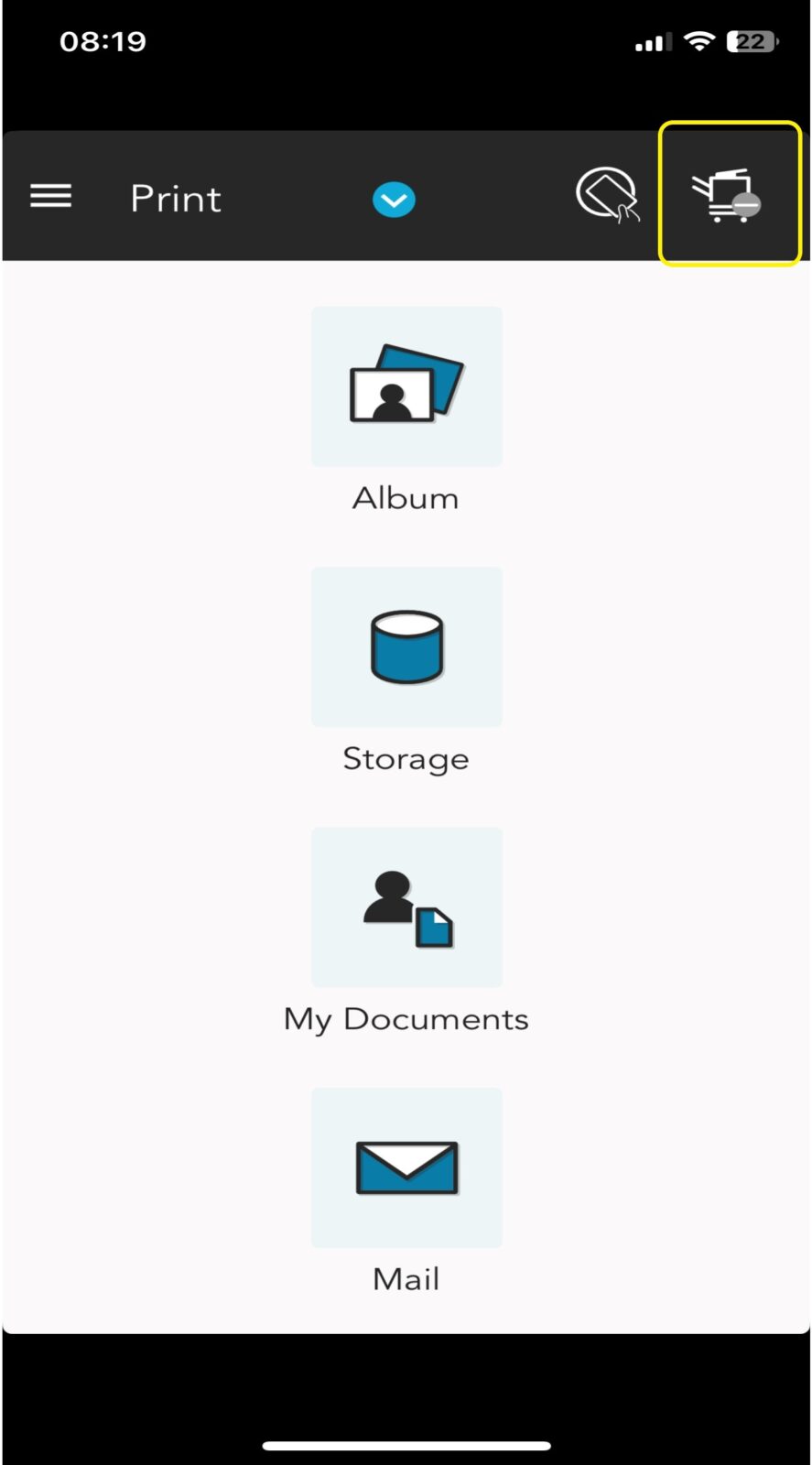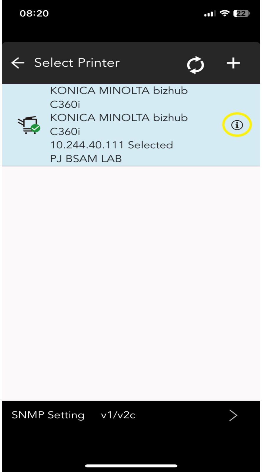 STEP 1 – Open the Konica Minolta Mobile Print application and select the Printer Icon on right hand side.