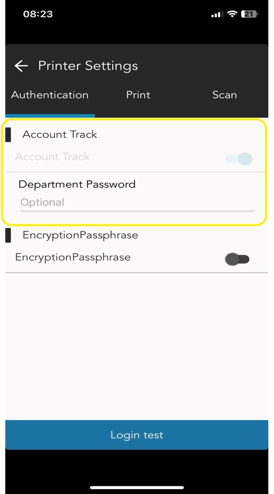 Guide on how to Key-in the User Authentication or Account Track details On the Konica Minolta Mobile Print for Iphone Devices.