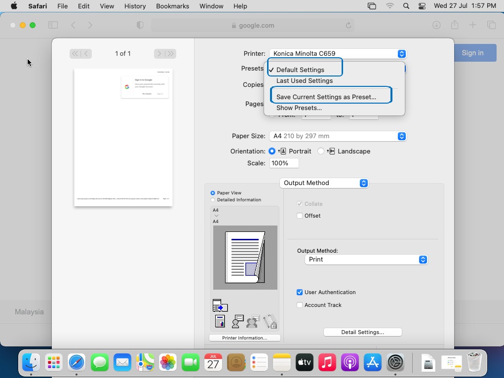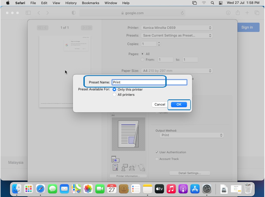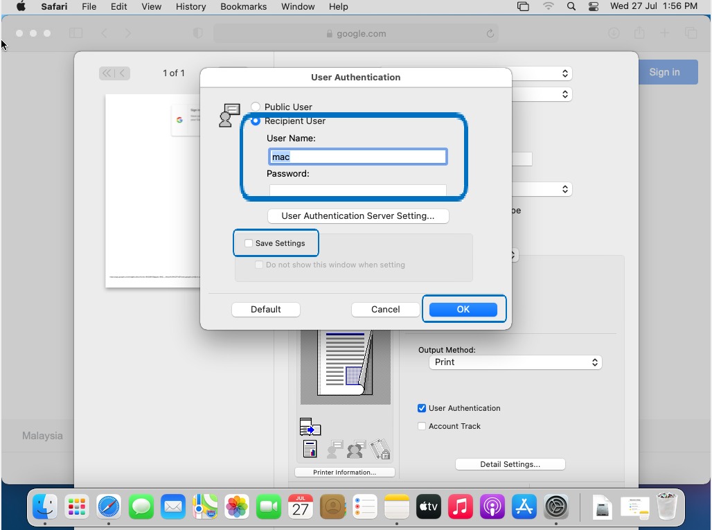How To Key-in User Authentication/Account Track on Printer Driver for MAC OS