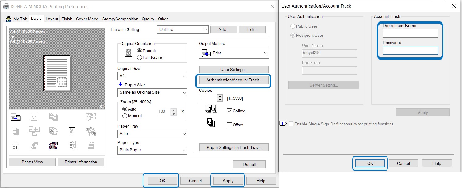 Account Track Password On Printer Driver