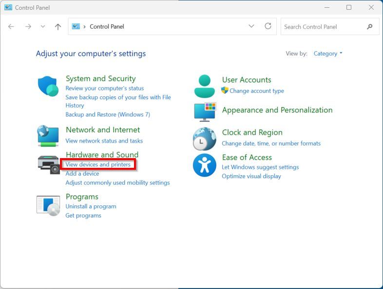 STEP 1 – Go to the PC Control Panel and select Devices and Printers.