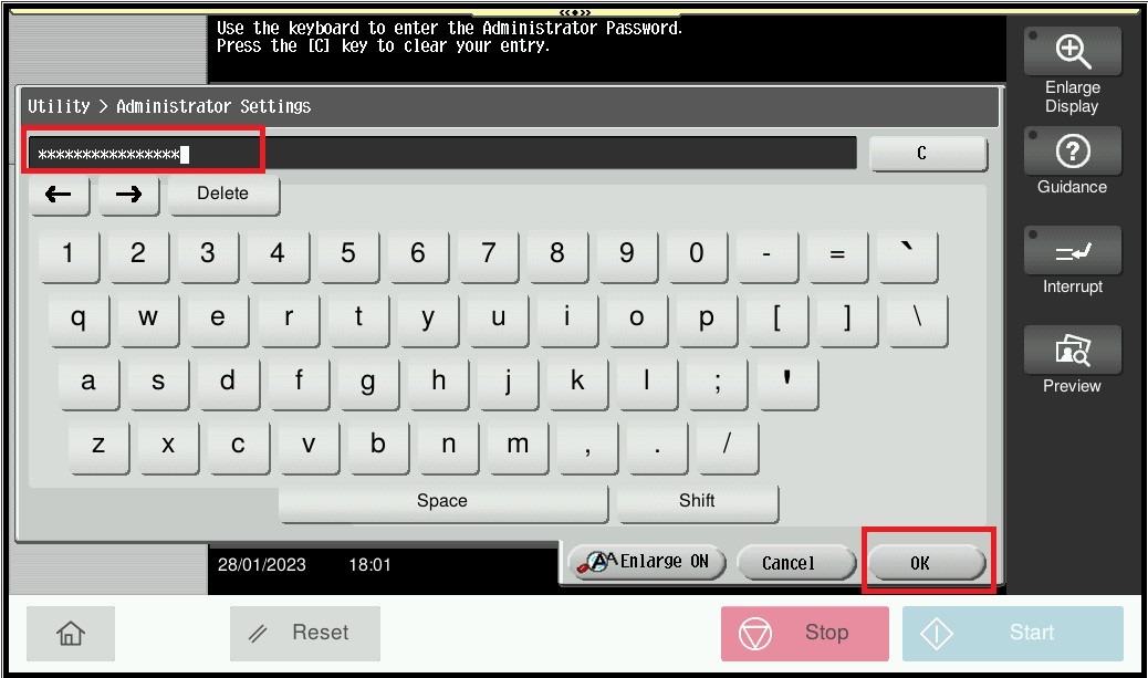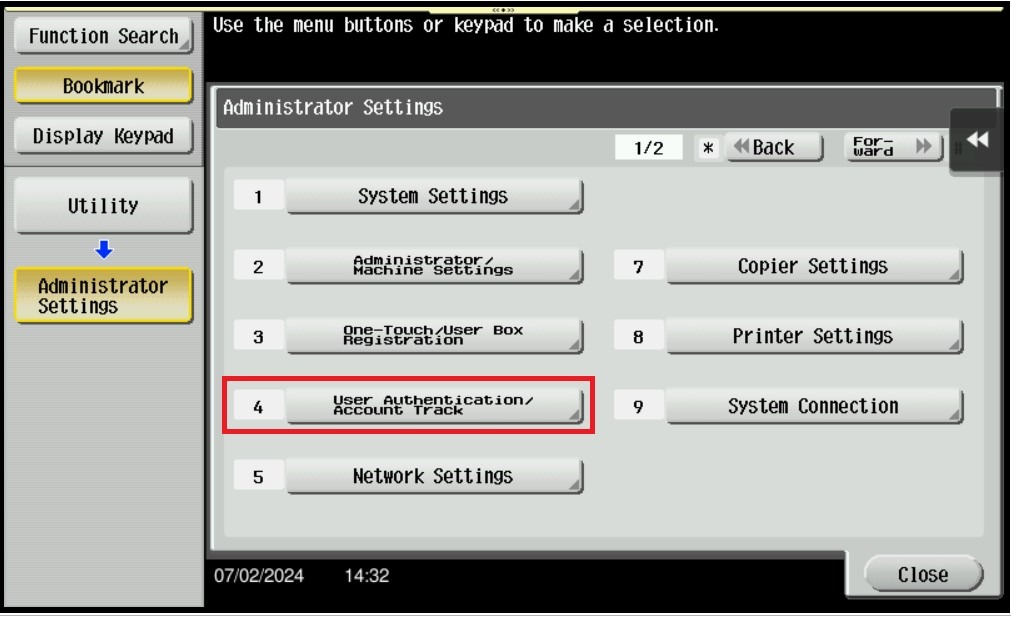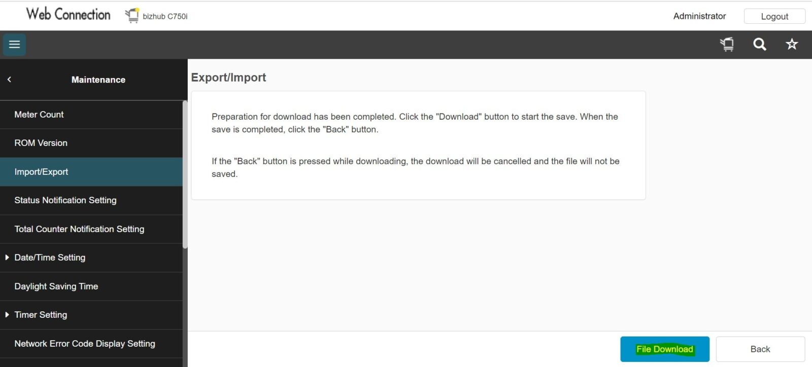 STEP 1 – Access the machine Web Connection and login as Administrator, click on this LINK on how to access the portal.