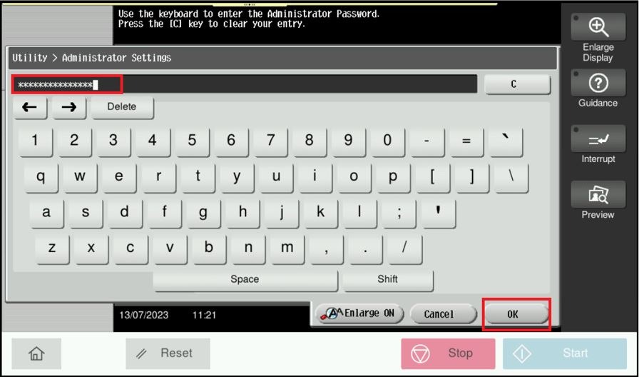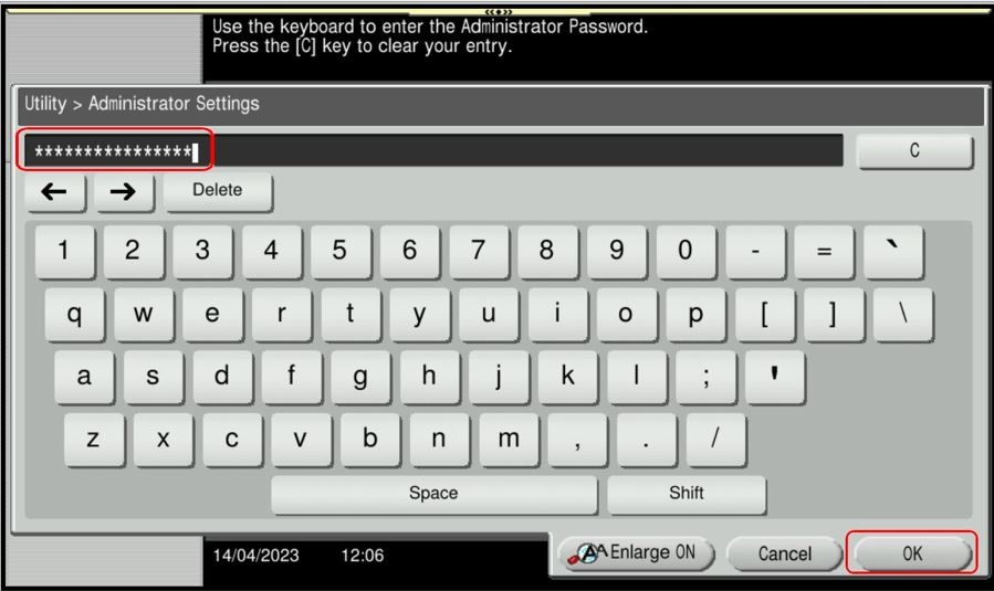 STEP 3 – Key in Admin Password and select [OK] to login.