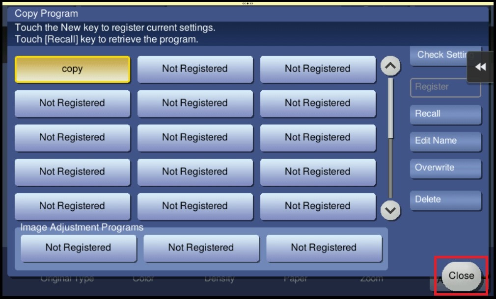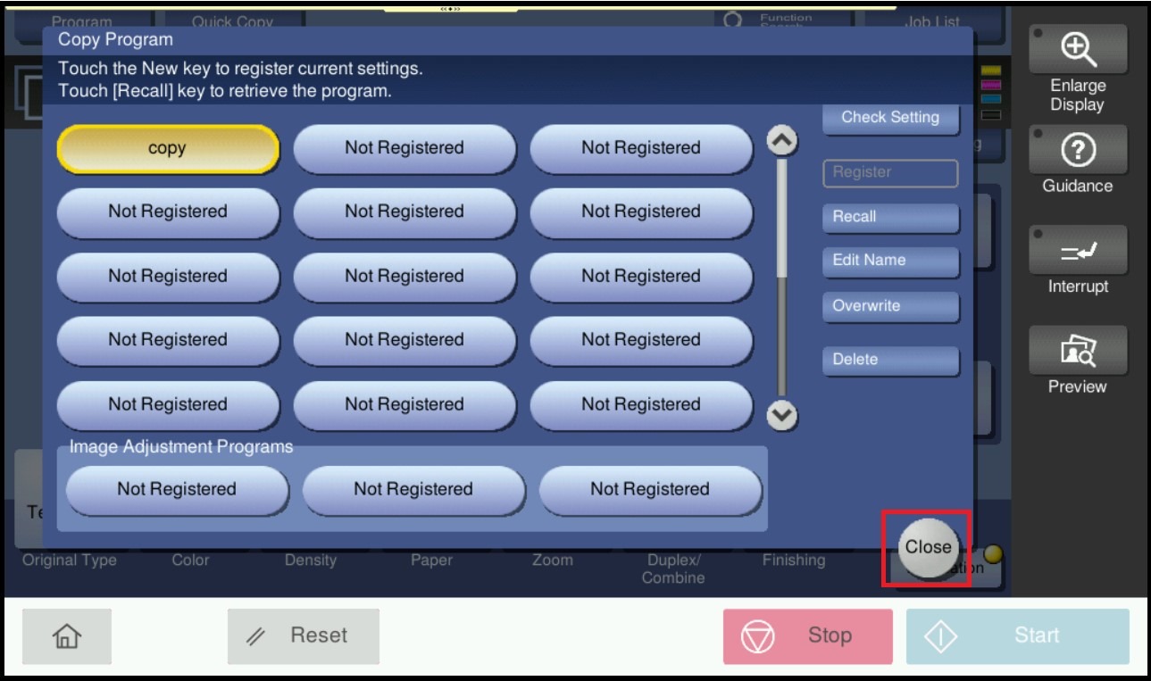 STEP 5 – The registered program will be appear in the Program List, select [Close] to exit from program list.