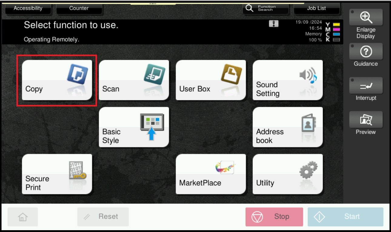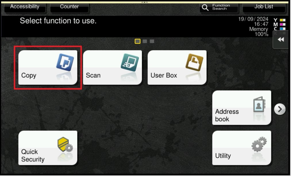 STEP 1 – On the Main Menu, select [Copy].