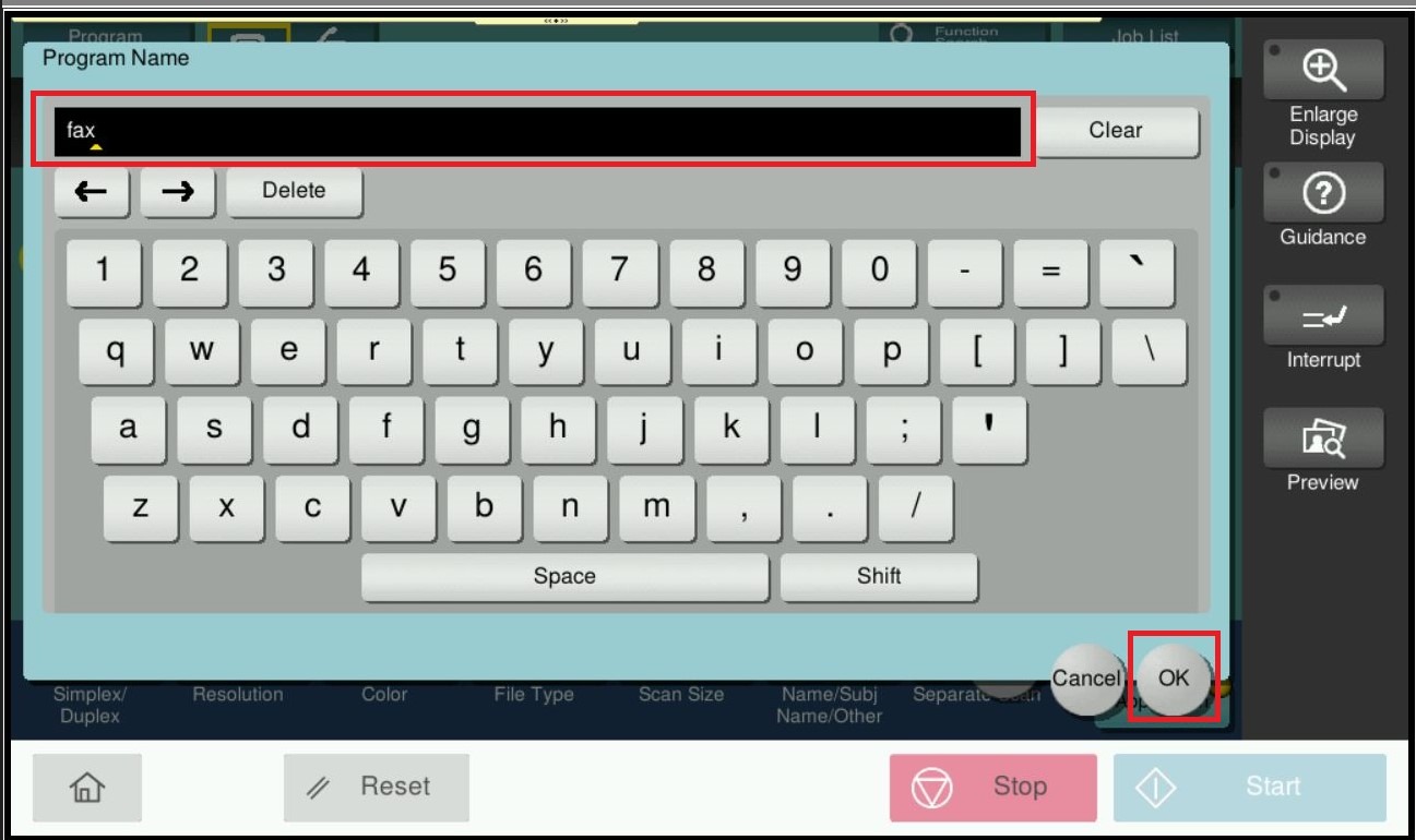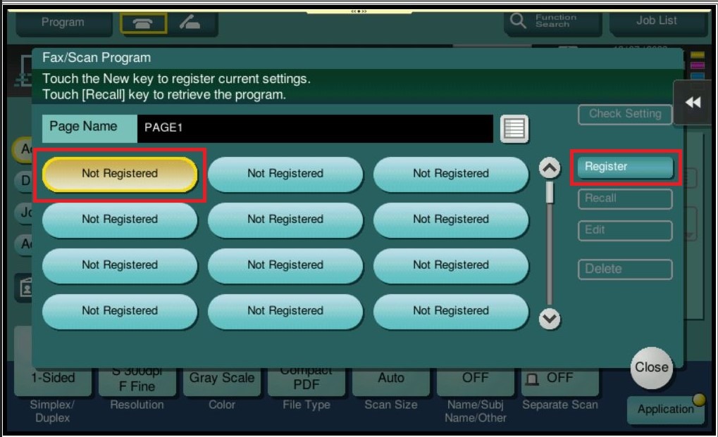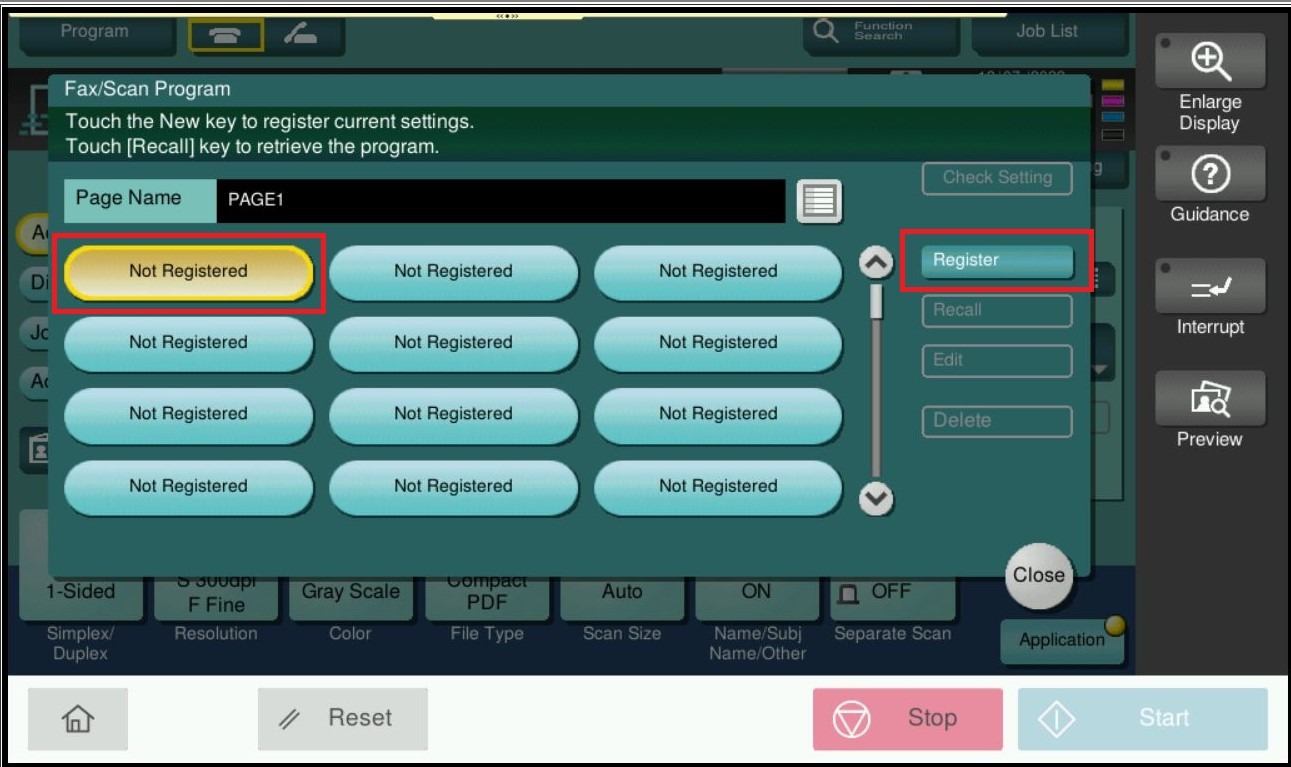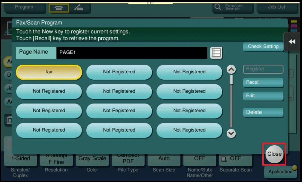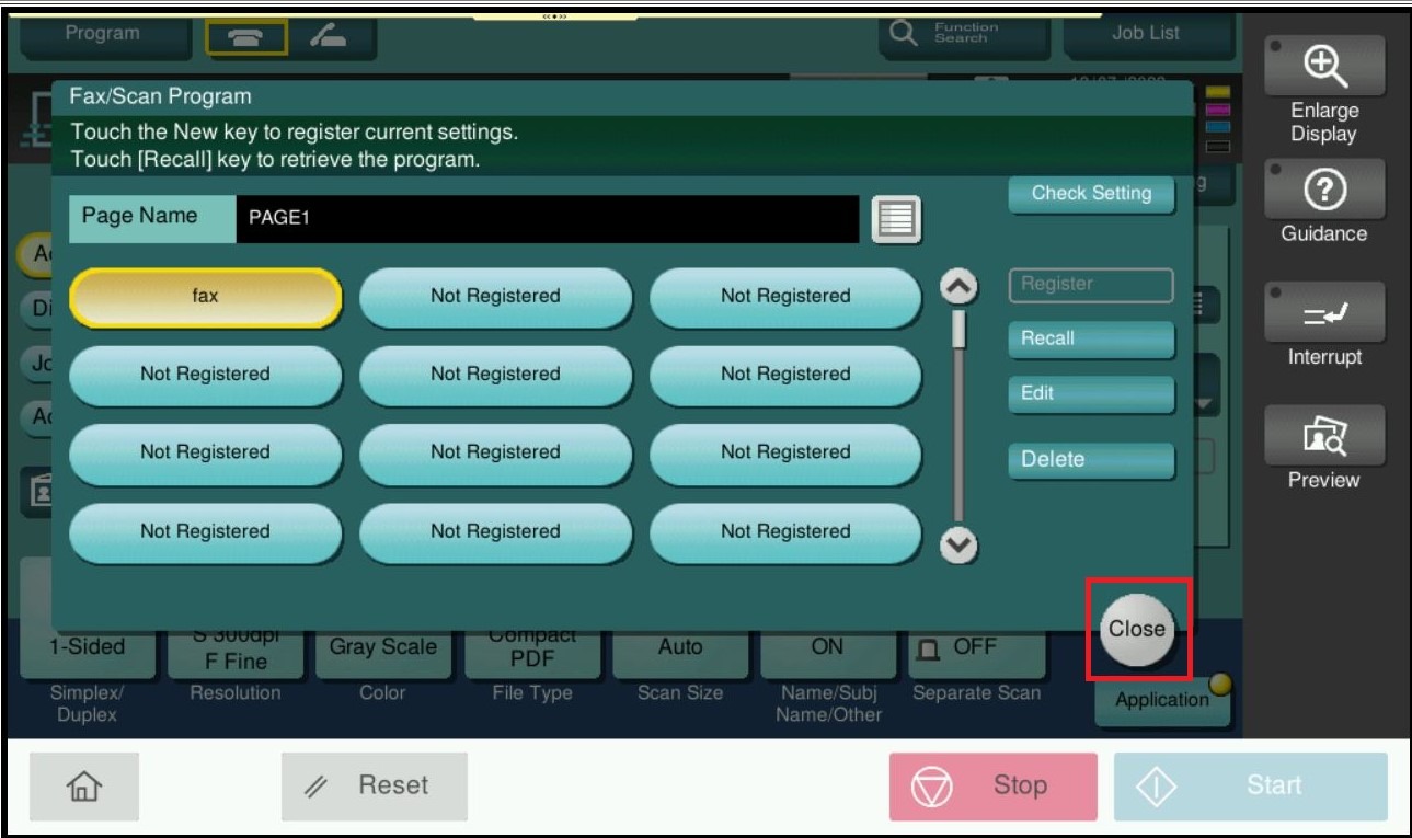 STEP 2 – Readjust the scan/fax setting that want to be saved, select [Program].