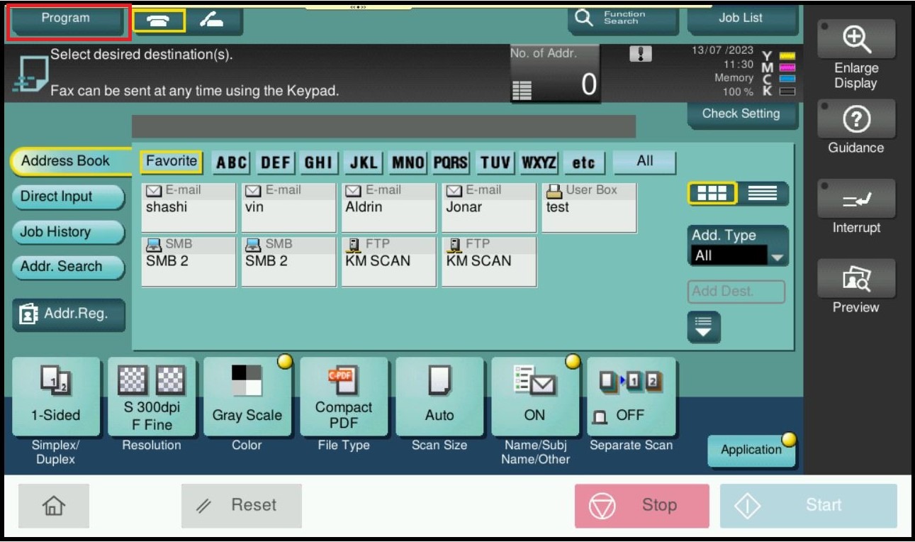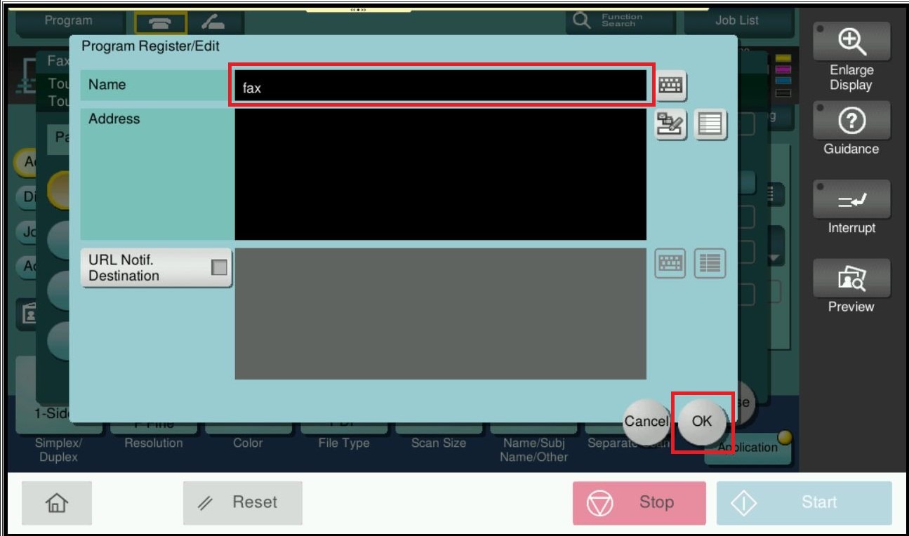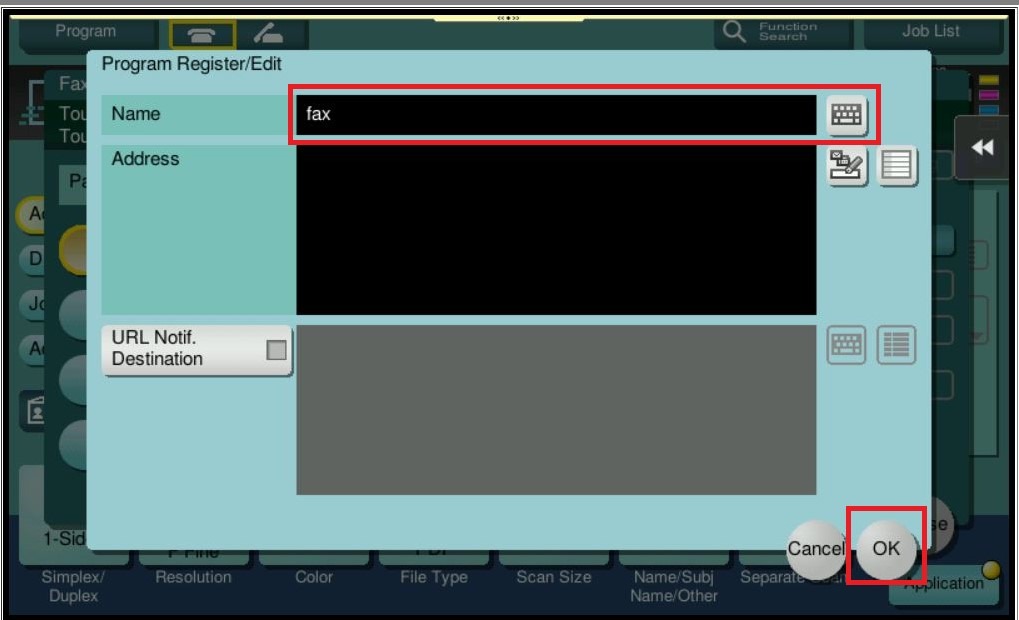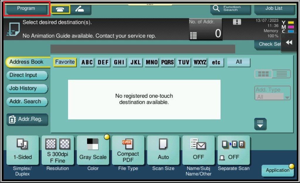 STEP 2 – Readjust the scan/fax setting that want to be saved, select [Program].