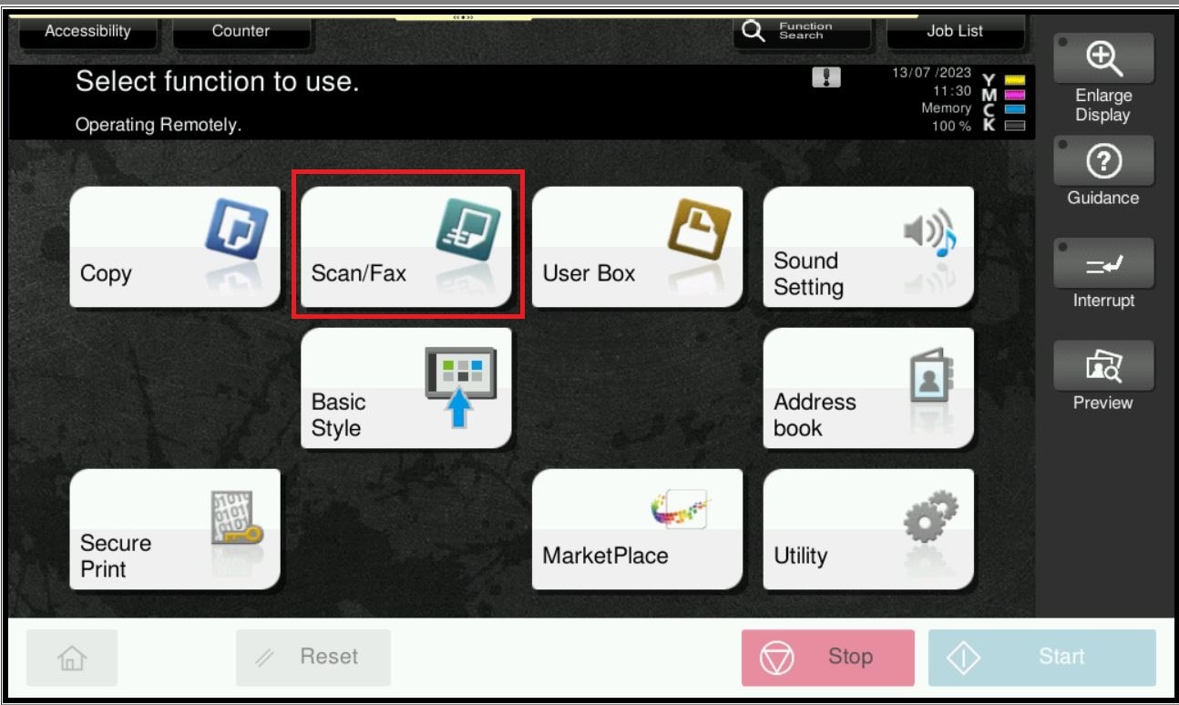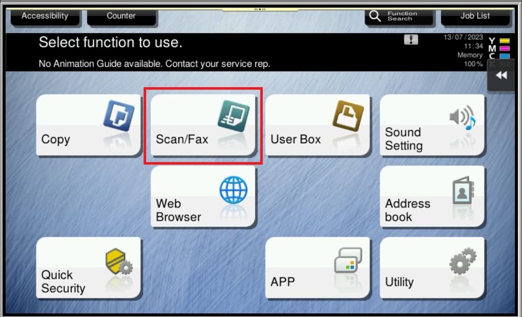 STEP 1 – On the Main Menu, select [Scan/Fax].