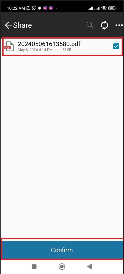 STEP 2 – Tick the scanned file that want to save then click [Confirm].