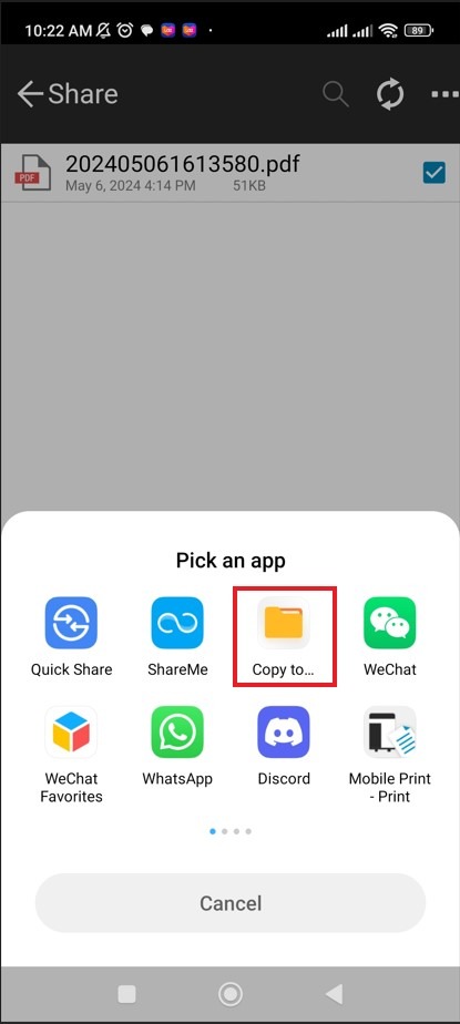 STEP 3 – Select [Copy] to or other similar option to save to phone storage. Alternatively, the scanned document can be shared directly via email or whatsApp to other person also.