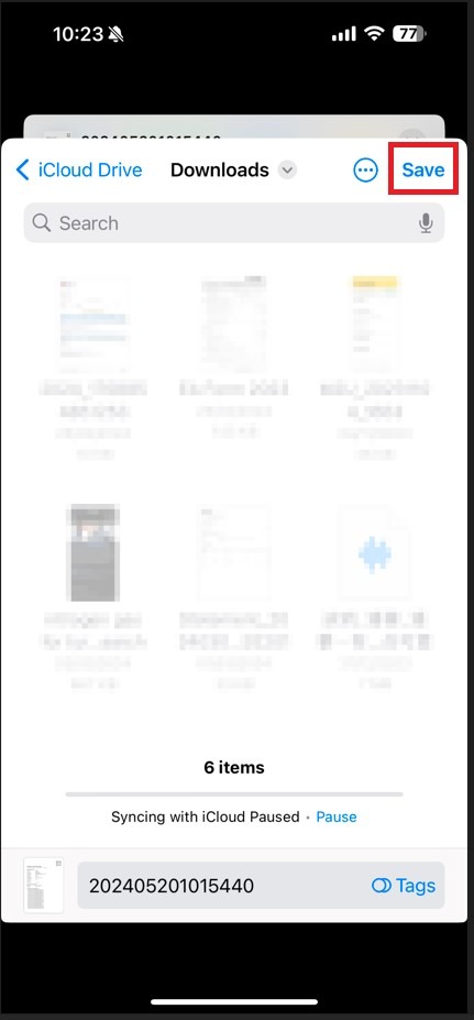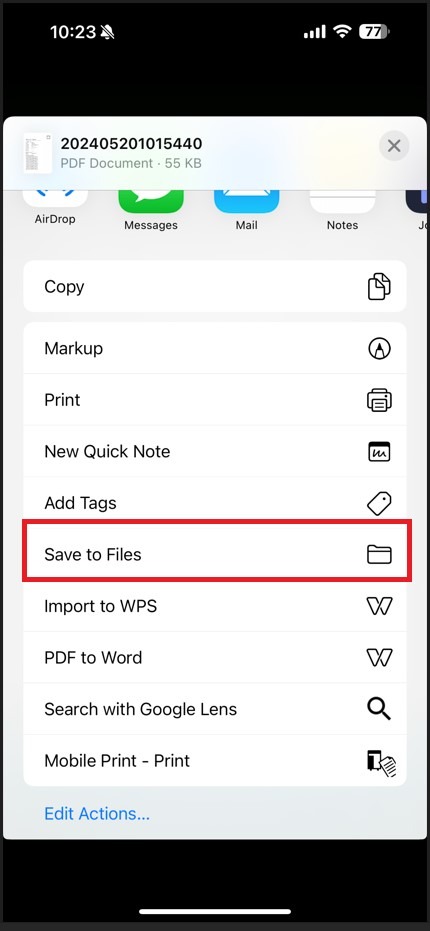 STEP 3 – Select [Save to Files] or other similar option to save to phone storage.